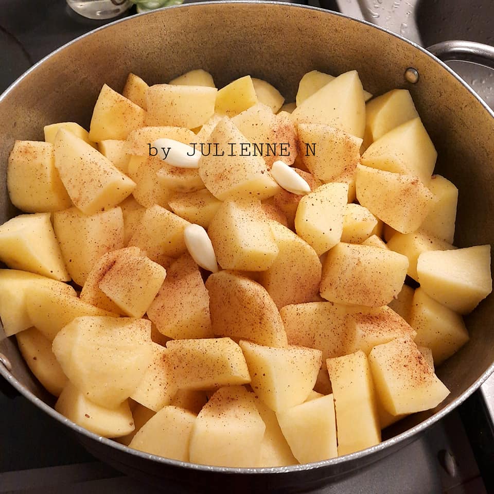 - Saupoudrer la muscade par-dessus et ajouter les gousses d’ail.