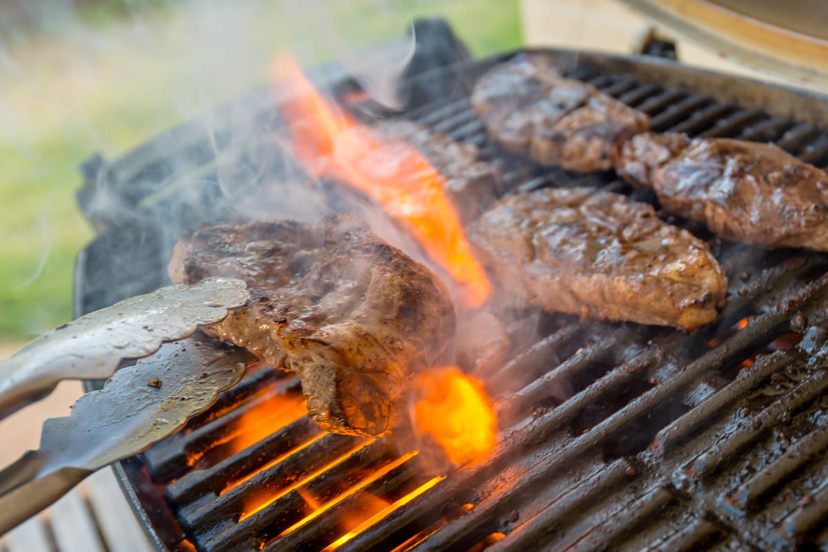 Pour éviter les flammes qui carbonisent la viande ou diffusent une fumée qui indispose les voisins ou les convives, enlevez le surplus de gras sur la grille/grillage. La graisse attise le feu. Utilisez un couteau tranchant et souple, puis glissez le plus près possible de la ligne de gras pour éviter de perdre de la viande. Brossez toujours la grille pour enlever les saletés et  toujours badigeonner les aliments avec de l’huile pour éviter qu’ils ne collent.