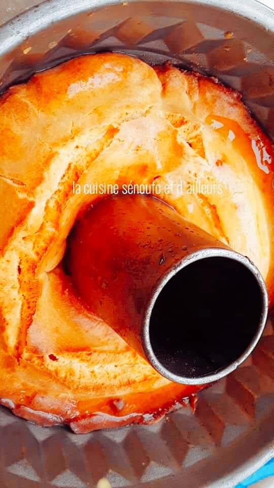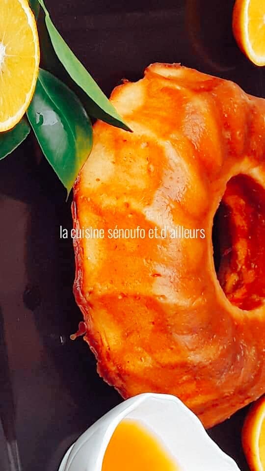 Dès que vous le sortez , arroser le avec le sirop d’orange. 3minutes après démouler le.