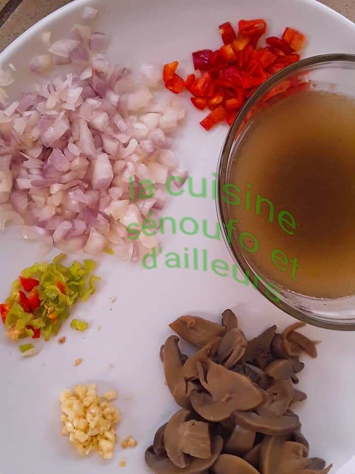 - Découper en dé l’oignon + le poivron .Hacher le piment vert + le persil +l’ail.