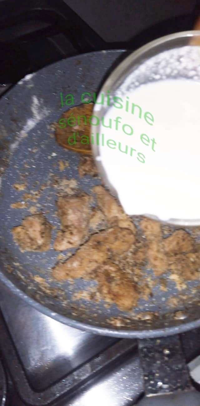 - Mettre une poêle au feu y ajouter la noisette de beurre, lorsqu’elle fond y mettre la viande la saler , la poivrer et la frire pendant 3minutes.