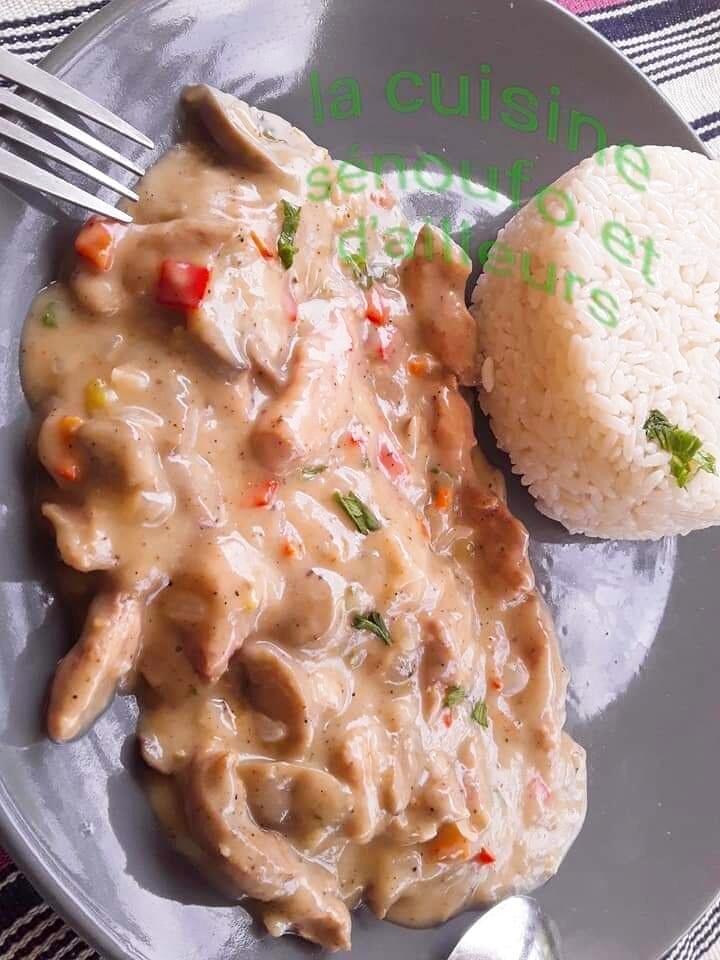 Sauté de dinde a la crème fraiche, curry et champignons