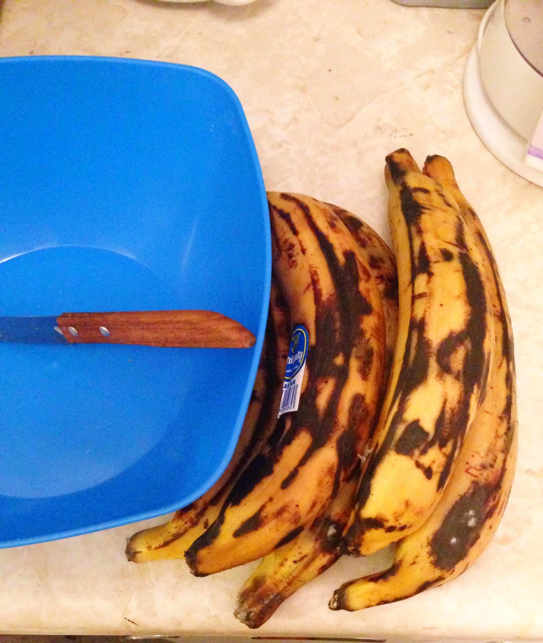 - Éplucher vos bananes et découper les en cubes, rondelles, ou lamelles.