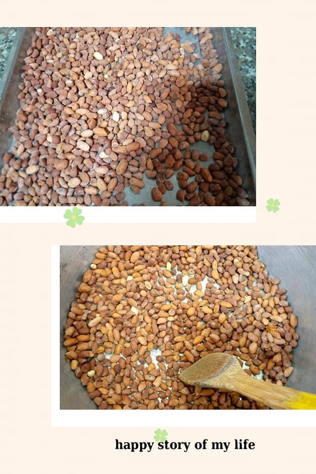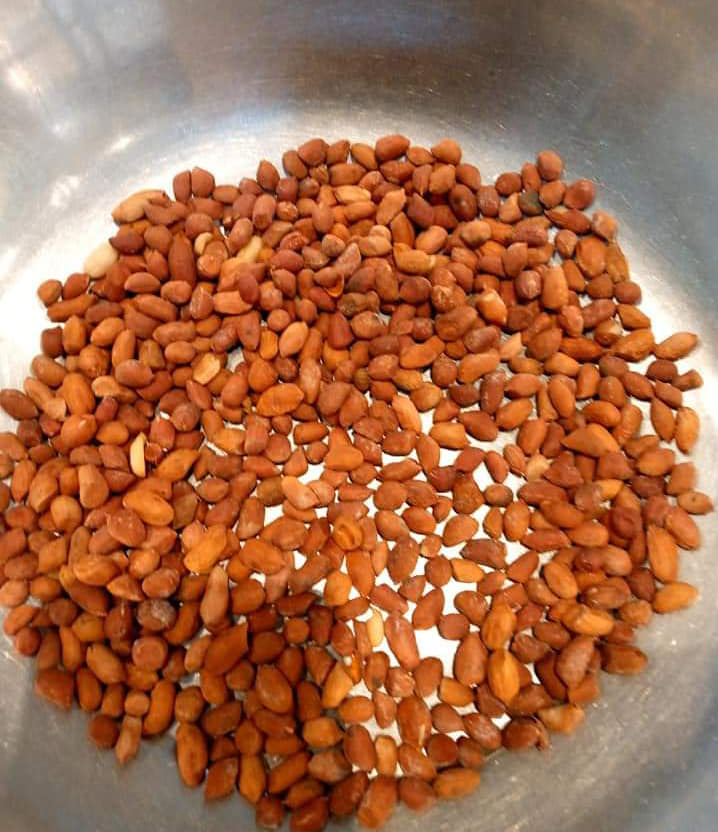 Après avoir séché les arachides, j’ai grillé juste quelques minutes pour affiner le séchage (environ10).mais c facultatif .