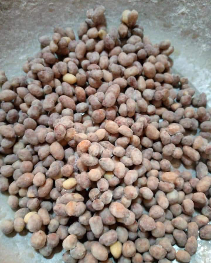 Mouiller les arachides avec deux tasses d’eau bien salée juste 5minutes)