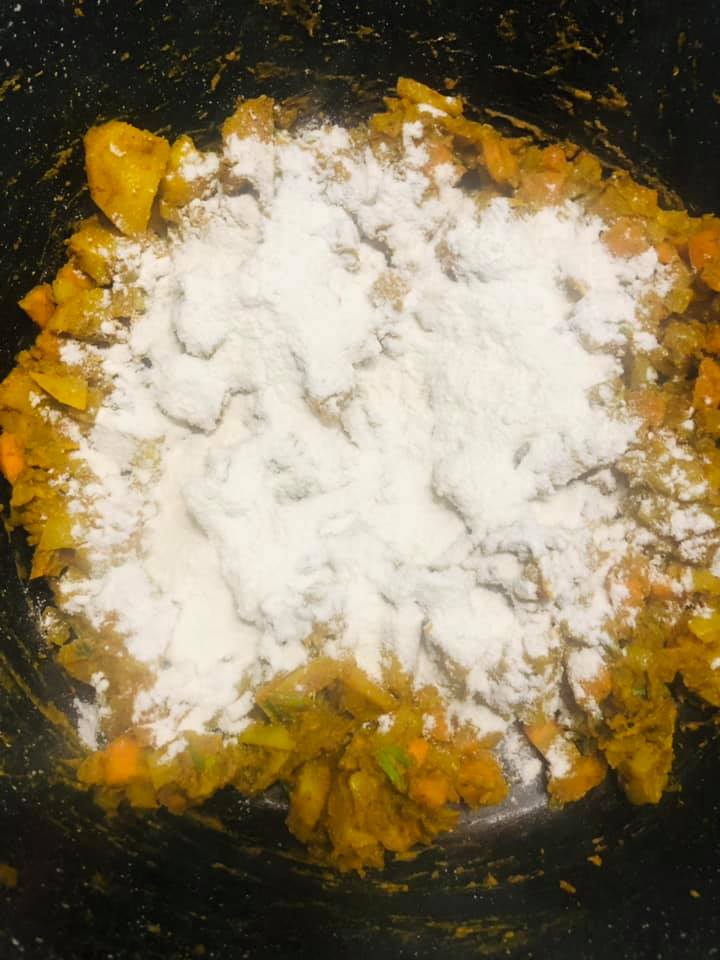 Une fois vos légumes colorés ajoutez la farine remuer brièvement