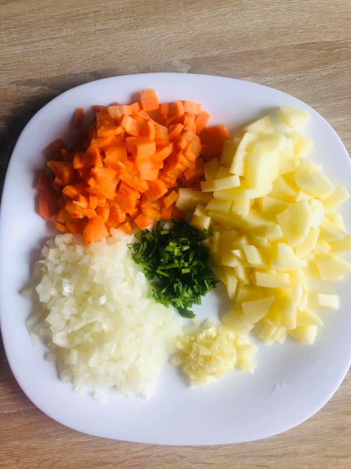 Découpez les légumes finement ainsi que l’es tige de coriandre