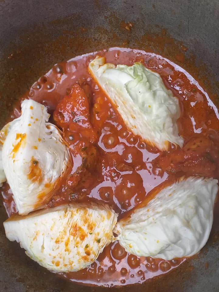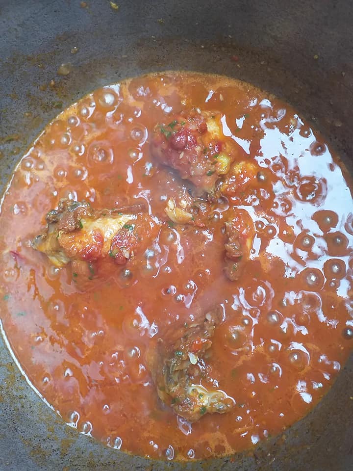 Rajoutez ensuite ( oignon, tomates, poivron, ail et persil mixé ), puis le concentré de tomate et laisser mijoter 5 minutes environ.
