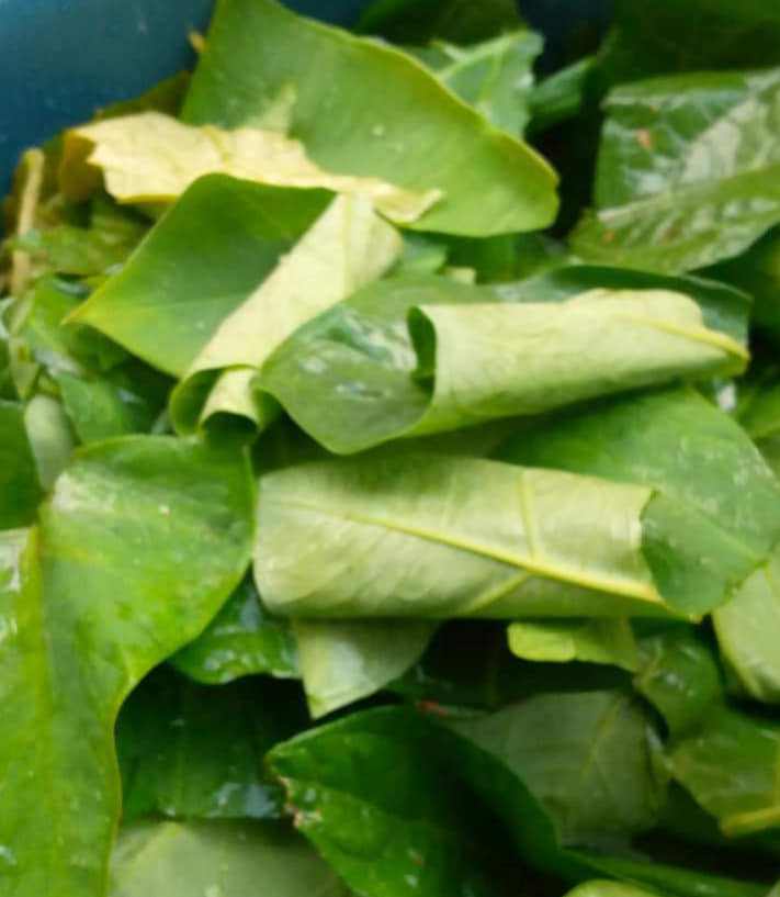 Nb: à défaut on peut prendre des jeunes feuilles de taro ou alors des feuilles de folon. Vous pouvez aussi ajouter de bonnes feuilles du ndolè peu amer pour mélanger).