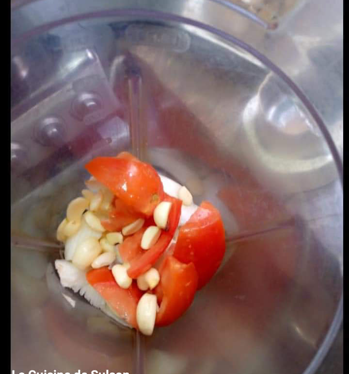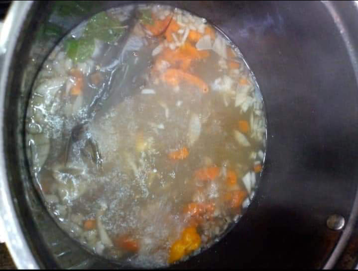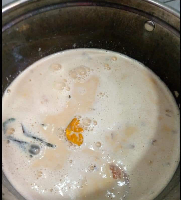 Couper demi-oignon dans 2 ou 3verres d’eau bouillante avec 1 piment entier et 2 feuilles odjom.