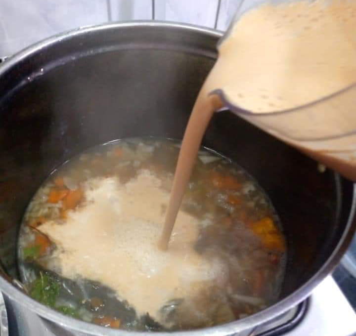 5 minutes après, ajouter le poisson fumé, le poivre noir, du sel, 1 tomate découpée. Laisser bouillir à feu doux 10min jusqu’a ce que la cuisine soit inondée d’odeurs du village.