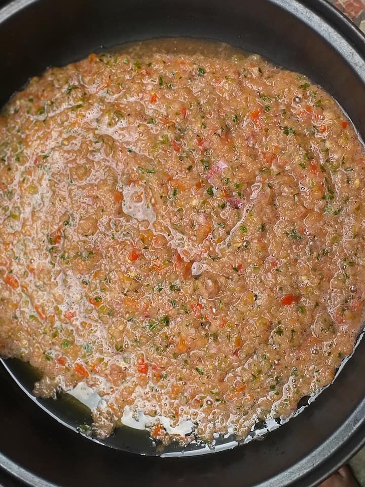 Faites mixez (poivron, oignons, tomates, persil, piment).