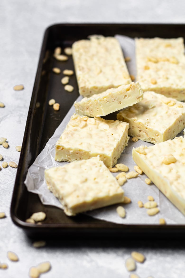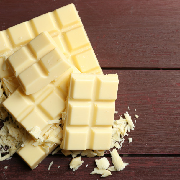 Le beurre de cacao est l’ingrédient principal du chocolat blanc, et le beurre de cacao est fabriqué à partir de graisses végétales comestibles extraites des fèves de cacao.