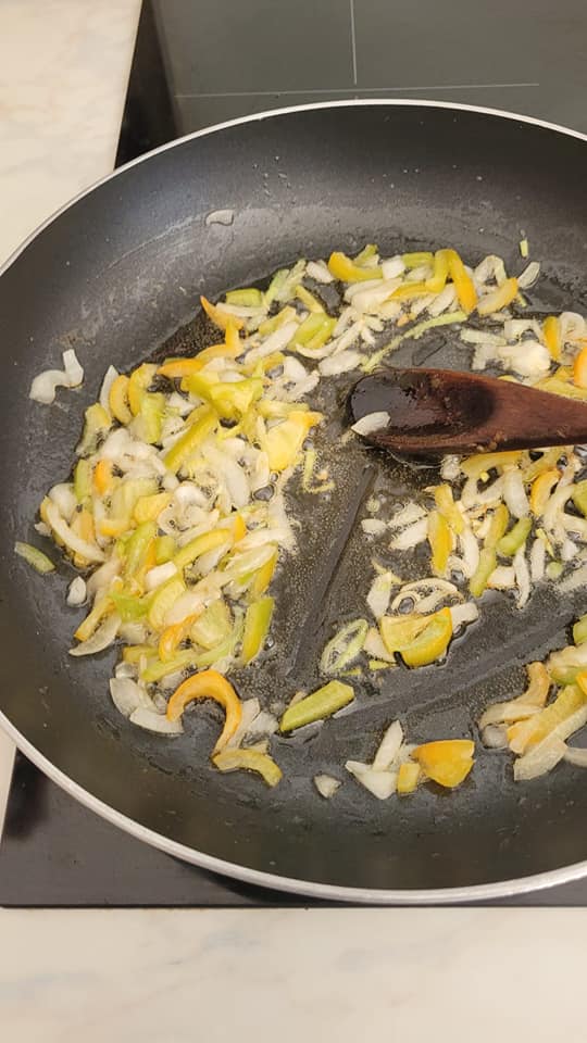 Faire revenir poivron et oignon