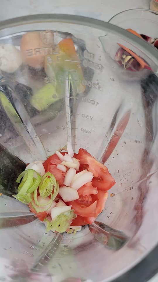 Tomate, oignon poireau, ail , tout mixer.