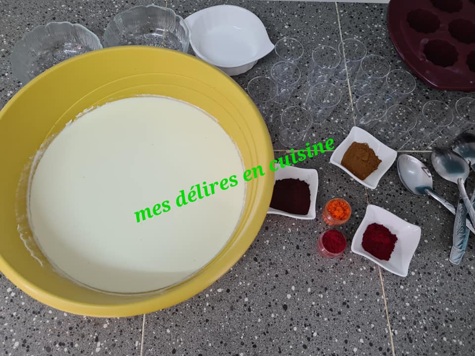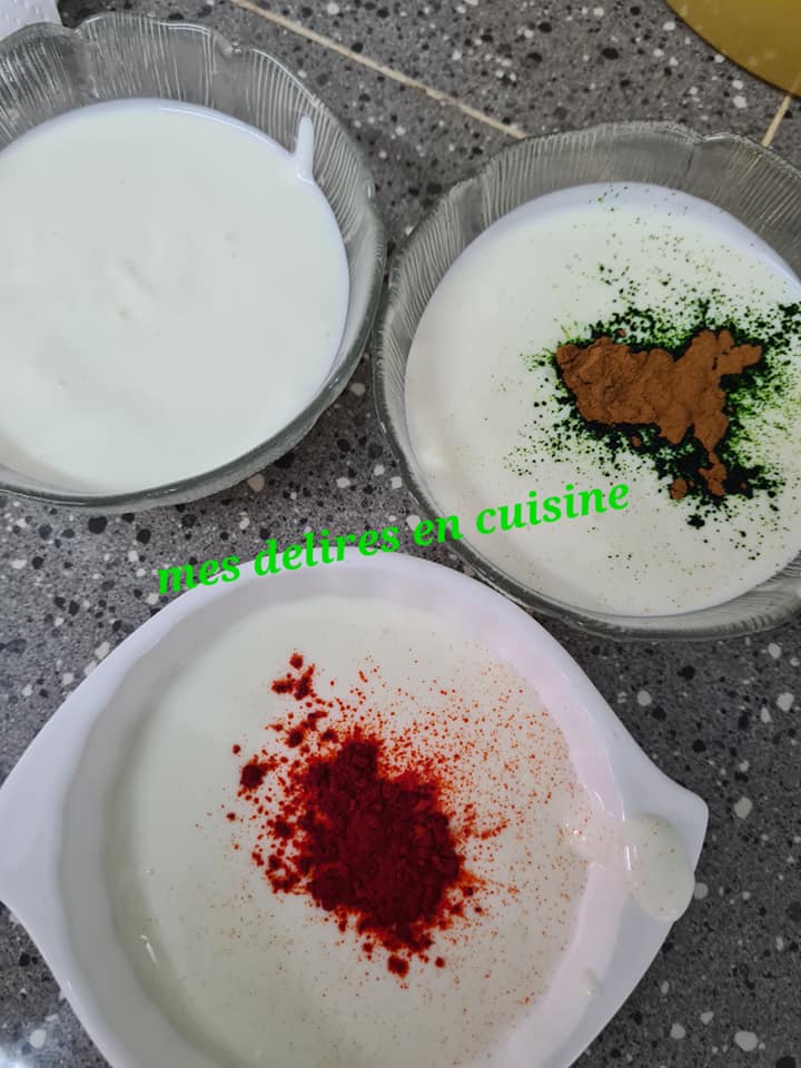 Mon yaourt fait maison et les colorants alimentaires choisis .Vous pouvez trouver les colorants chez les vendeuses au marché ou dans les supermarchés