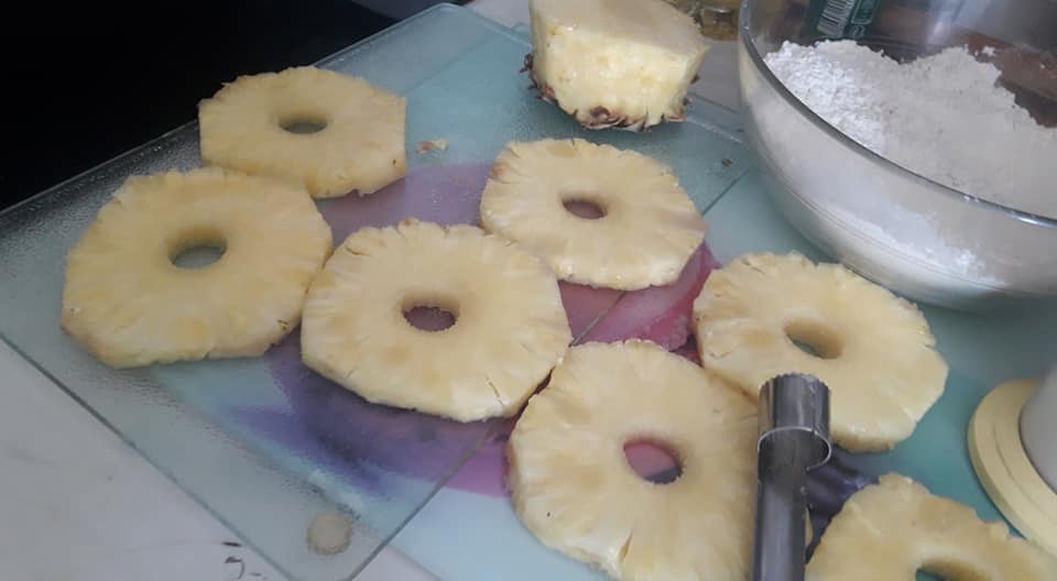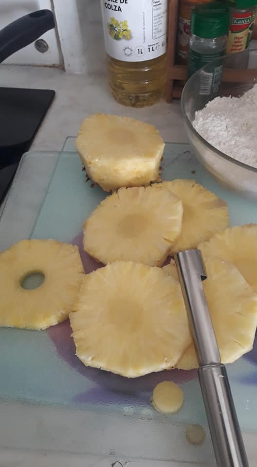 - Découper vos ananas, en fine rondelle, en enlevant le milieu dur.