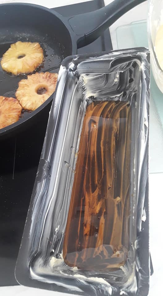 - Ajouter les blancs montés en neige, et verser sur les ananas caramélisés.