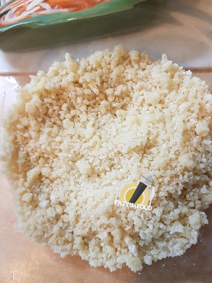 Mettre de l’eau à bouillir dans une casserole. Poser une passoire contenant l’attiéké émietté, laisser cuire environ 15 minutes. Vous pouvez également le mettre à chauffer au micro-ondes pendant 5 min.