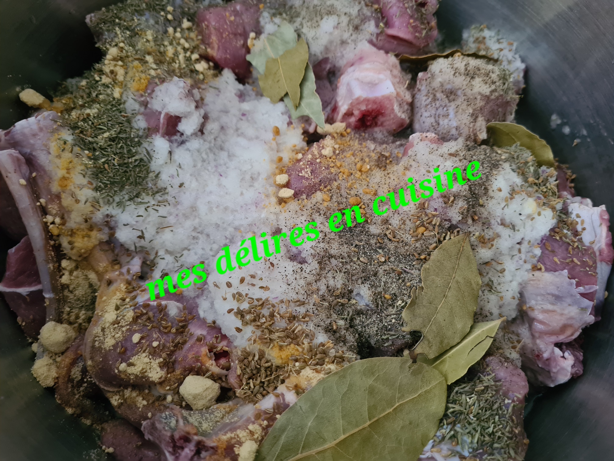 Mélanger la viande,le gingembre, les feuilles de laurier,l’anis vert,le Poivre noir et l’herbe de Provence