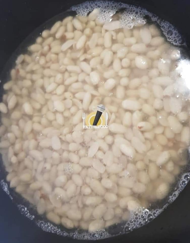 Dans une casserole faire bouillir les arachides pendant une dizaine de minutes et réserver.