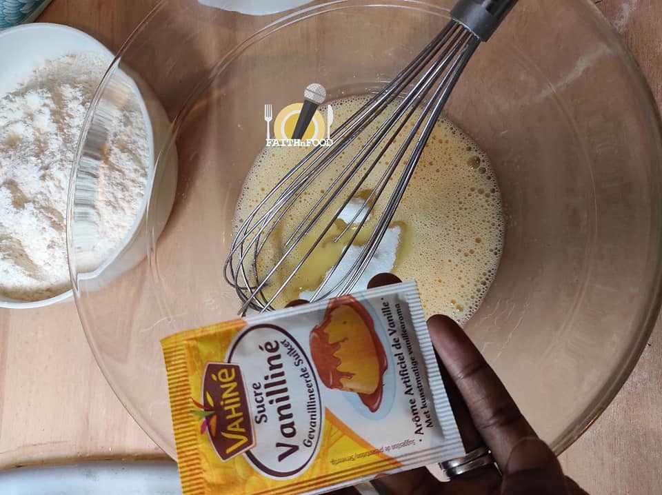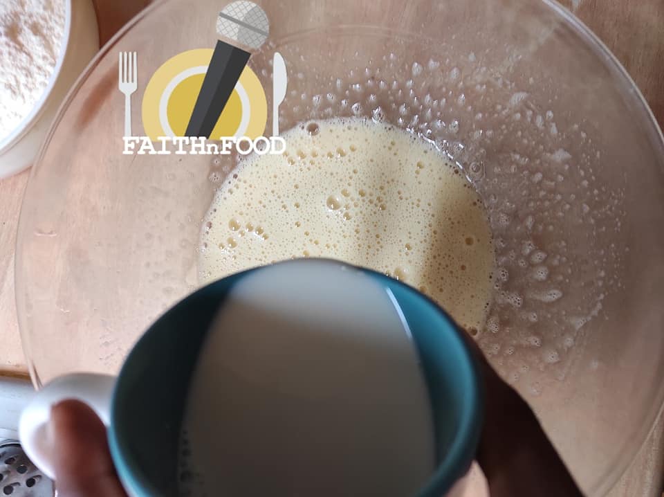 Dans un bol versé le lait préalablement chauffé et y ajouter la levure boulangère tout en remuant.