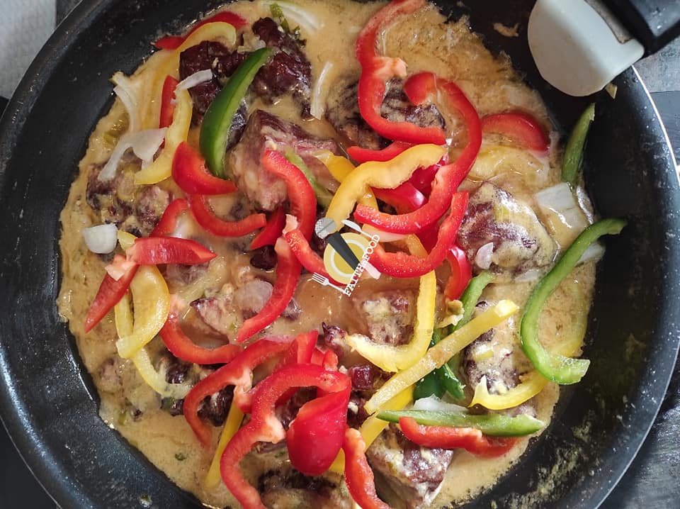 Mettre enfin les 3 poivrons et laisser cuire 10 min.