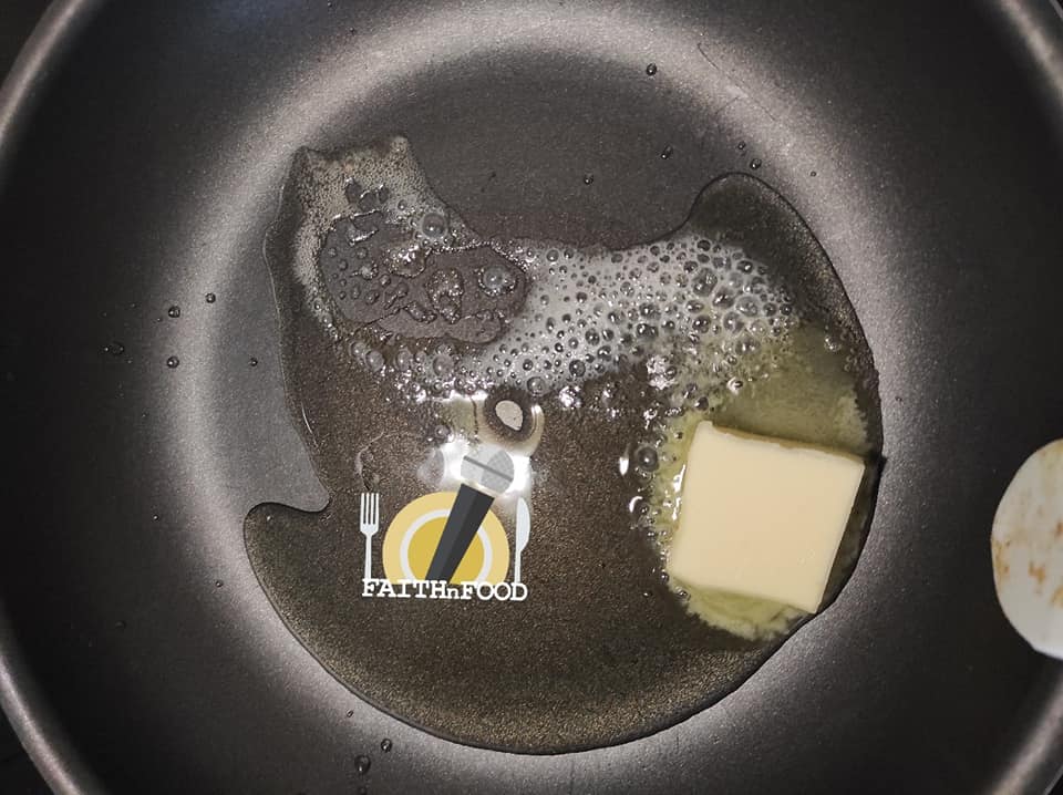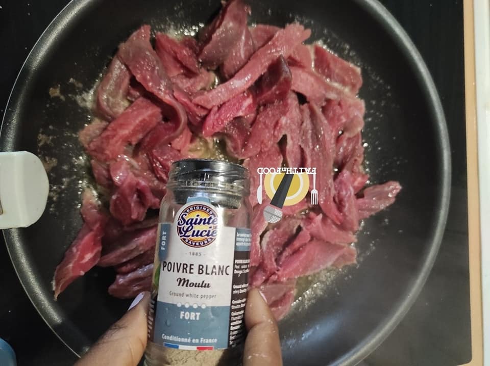 Le beurre fondu, mettre la viande découpée et y ajouter du poivre et du sel.