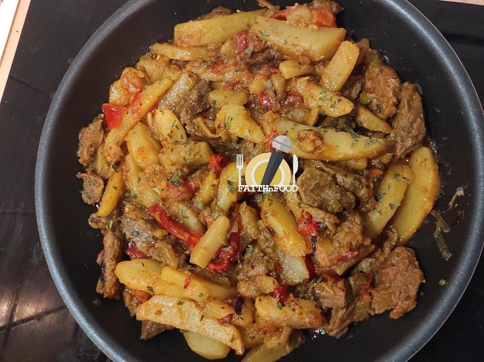 Ajouter du persil et laisser cuire, couvert et à feu moyen . Ajouter demi-verre d’eau au fur et à mesure s’il en manque jusqu’à la cuisson de vos pommes de terre.