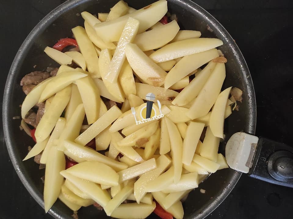 Incorporer par la suite vos pommes de terre. J’ai préféré les découper finement pour réduire le temps de cuisson.