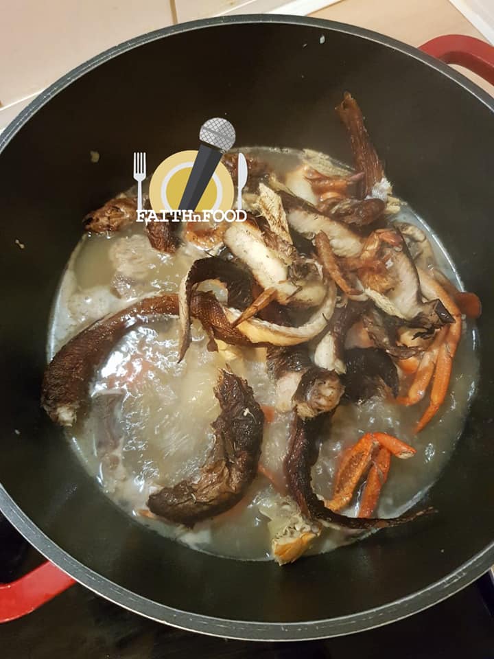 Dès que la viande cuite mettre le poisson préalablement nettoyé et laisser bouillir environ 5 min.