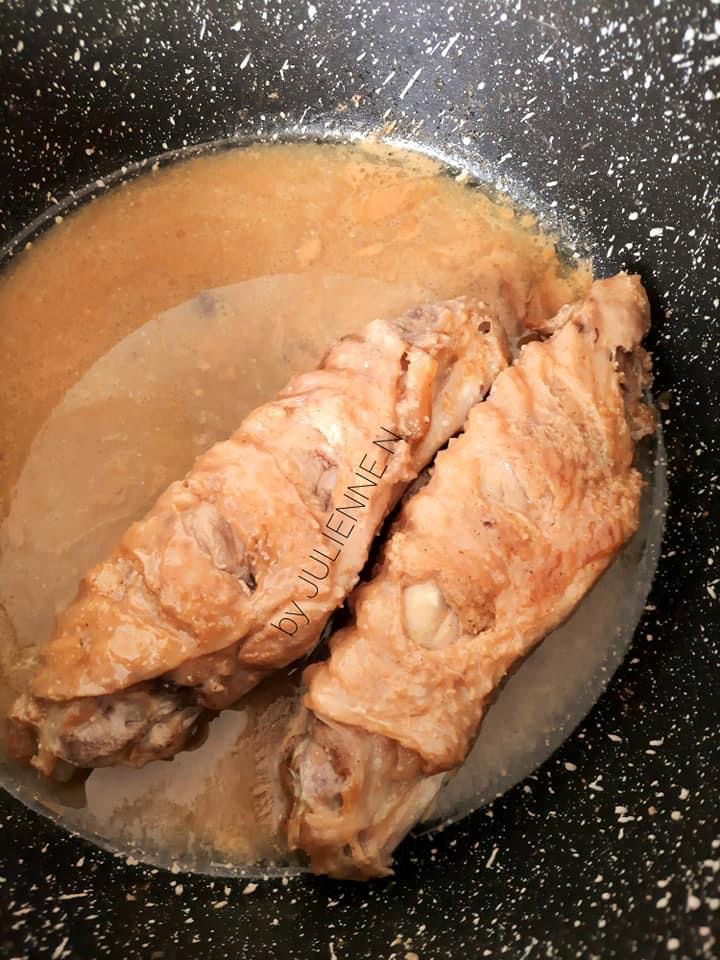- Faire cuire la viande à l’étouffée sans ajouter de matière grasse et dans son jus de marinade, pendant 25 minutes ( feu doux)
