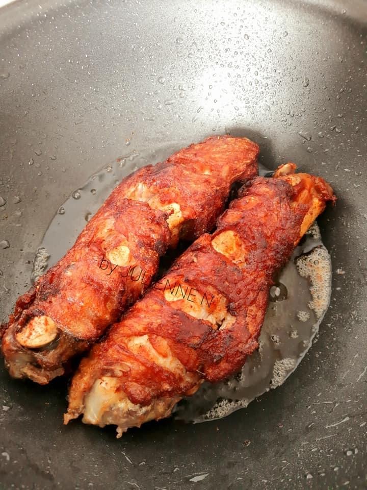 - Mariner la viande avec une cuillère de moutarde, les 3 cuillères de citron ou 2 cuillères à soupe de vinaigre pour ceux qui n’aiment pas le citron,