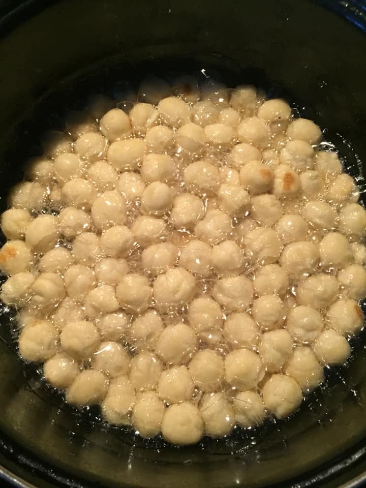 - Laisser reposer + ou – 1h, puis faire de toutes petites boules à la main ou alors aplatir la pâte sur un plan de travail et découper.
