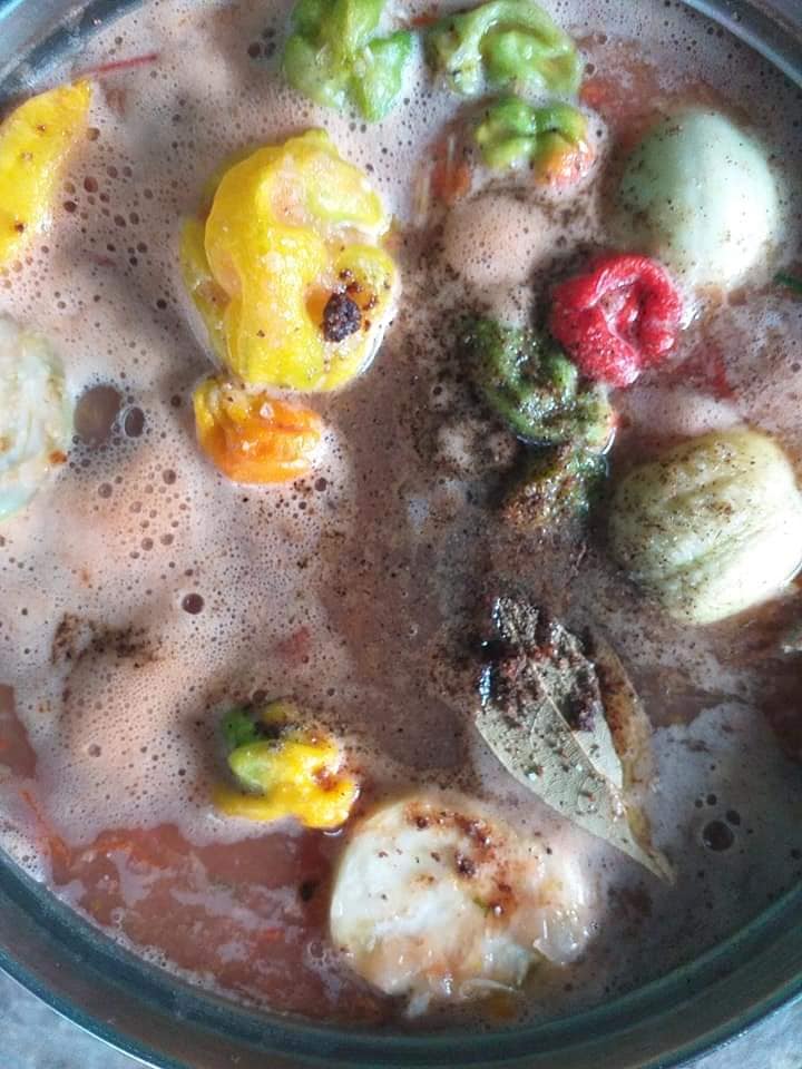 Les disposez dans une casserole, y ajouter les aubergines coupées en deux, les boules de piments.