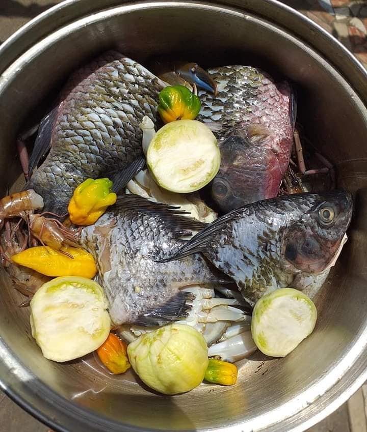 Bien nettoyer les ingrédients poissons, crabes et crevettes.
