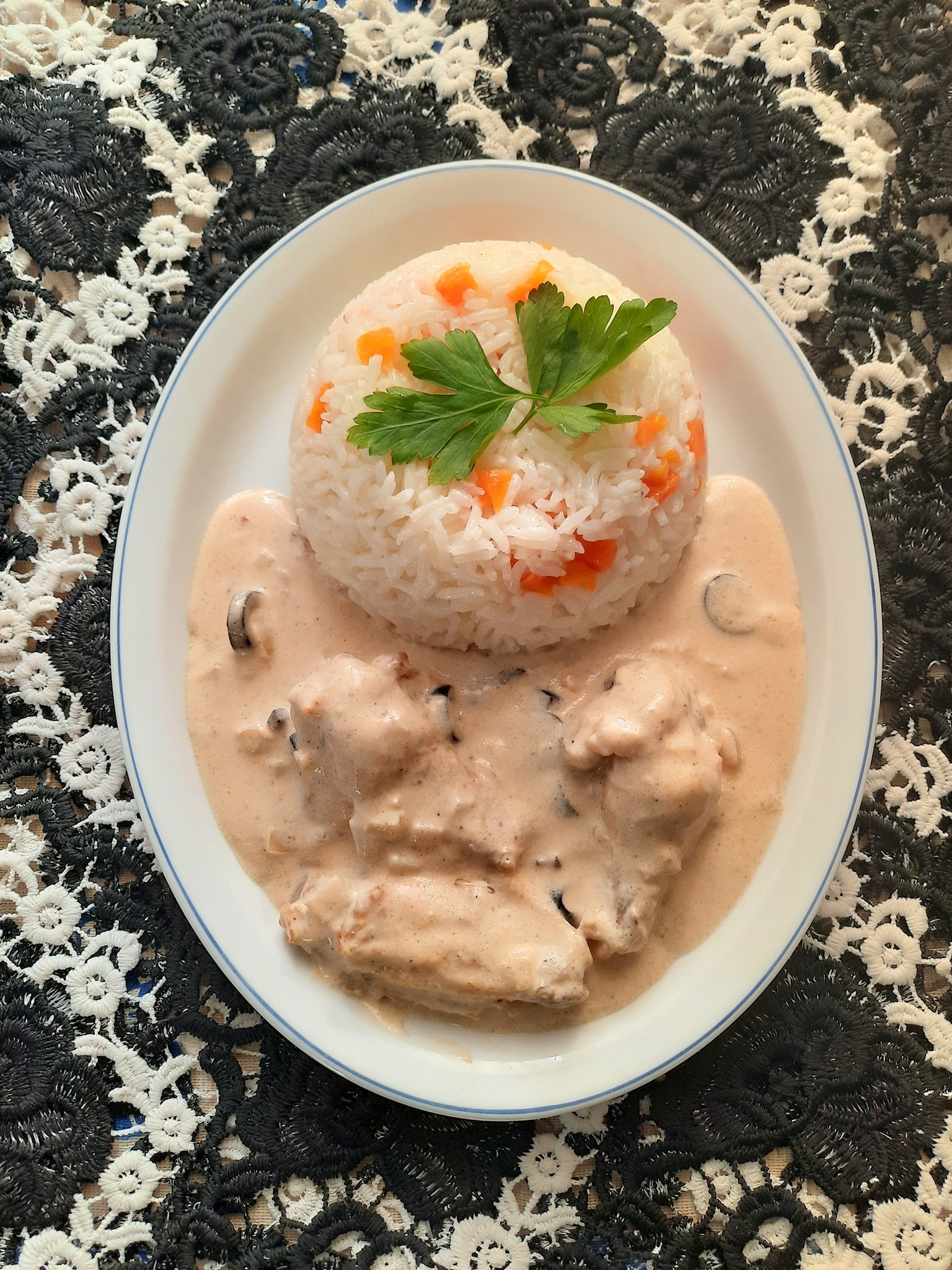 Sauce blanche à la crème fraîche avec du riz