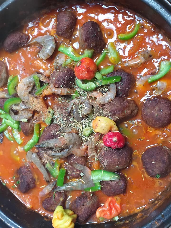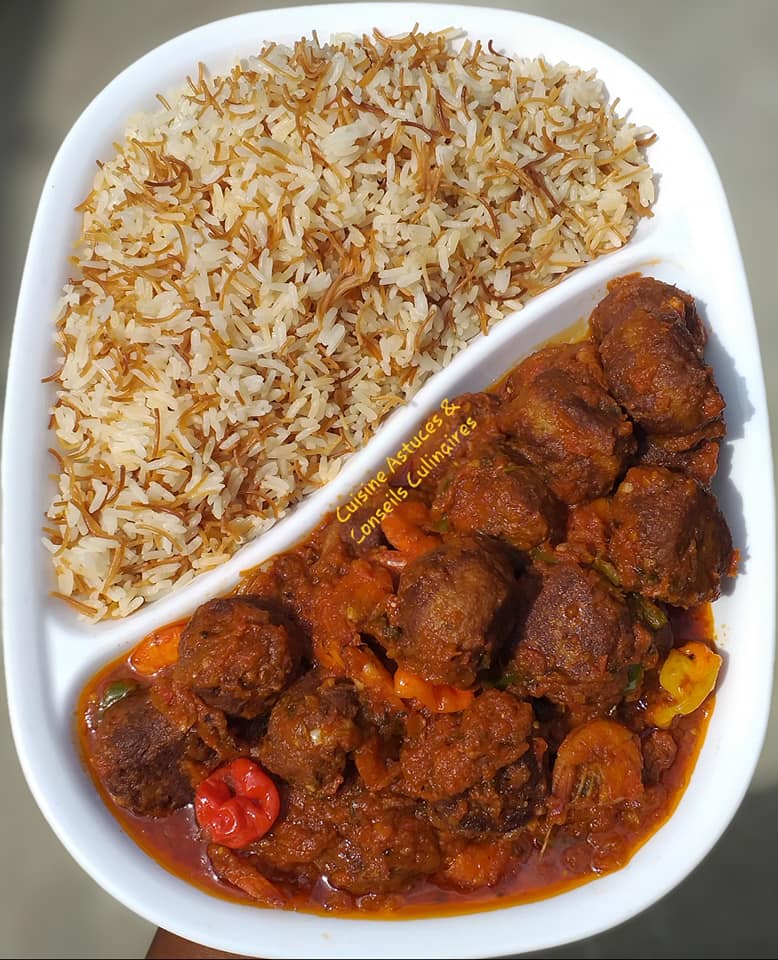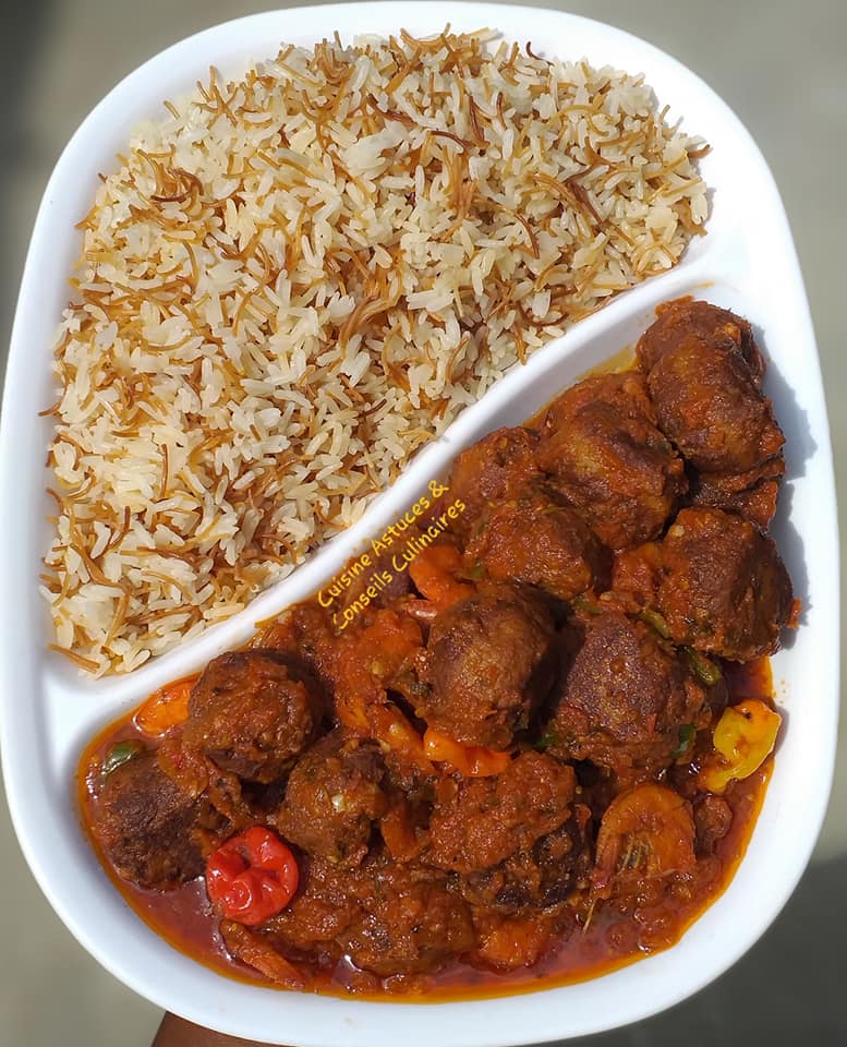Le riz vermicelles accompagné de sa sauce tomate et de boulettes de poisson et crevettes est un plat à la fois savoureux et réconfortant. Les arômes de la sauce s'harmonisent parfaitement avec la légèreté des vermicelles, créant une expérience culinaire unique.