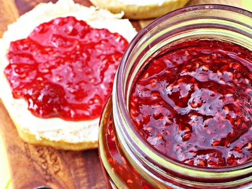Confiture fait maison à la framboise.