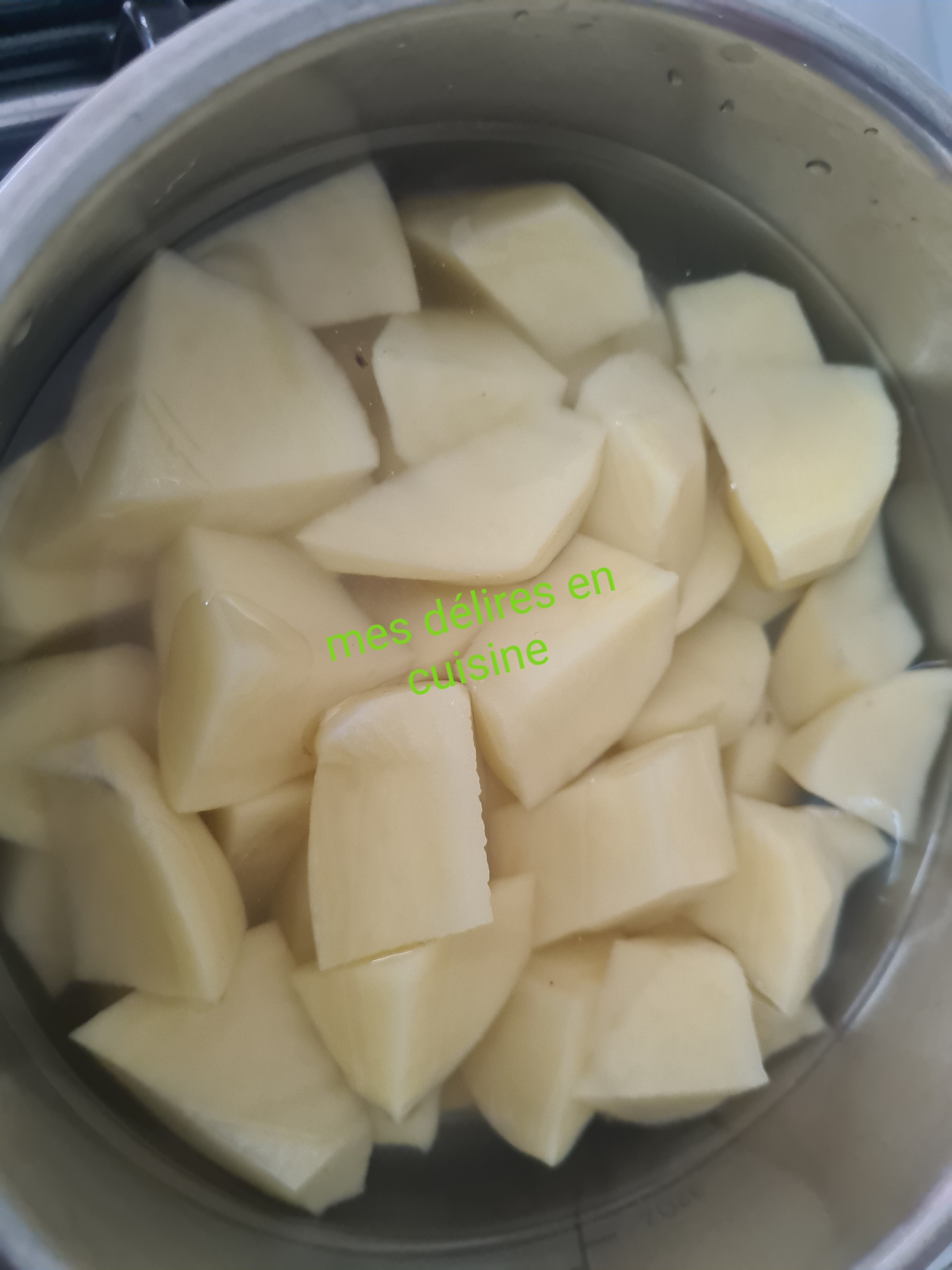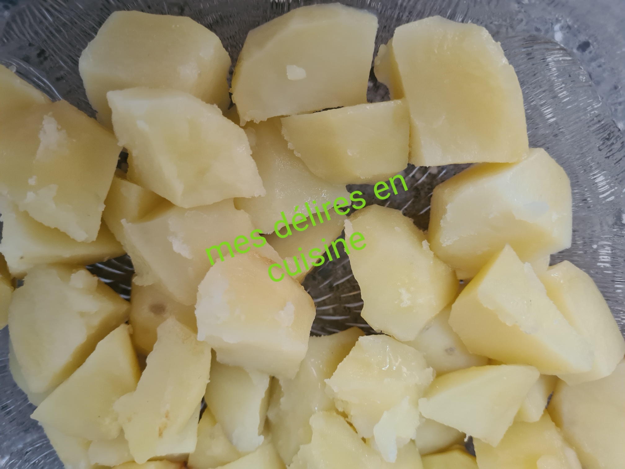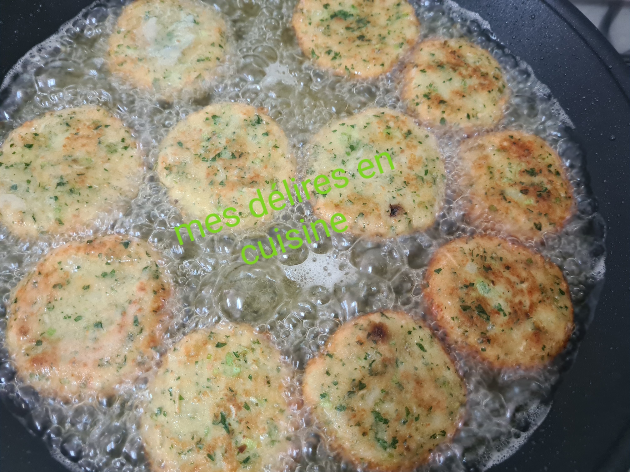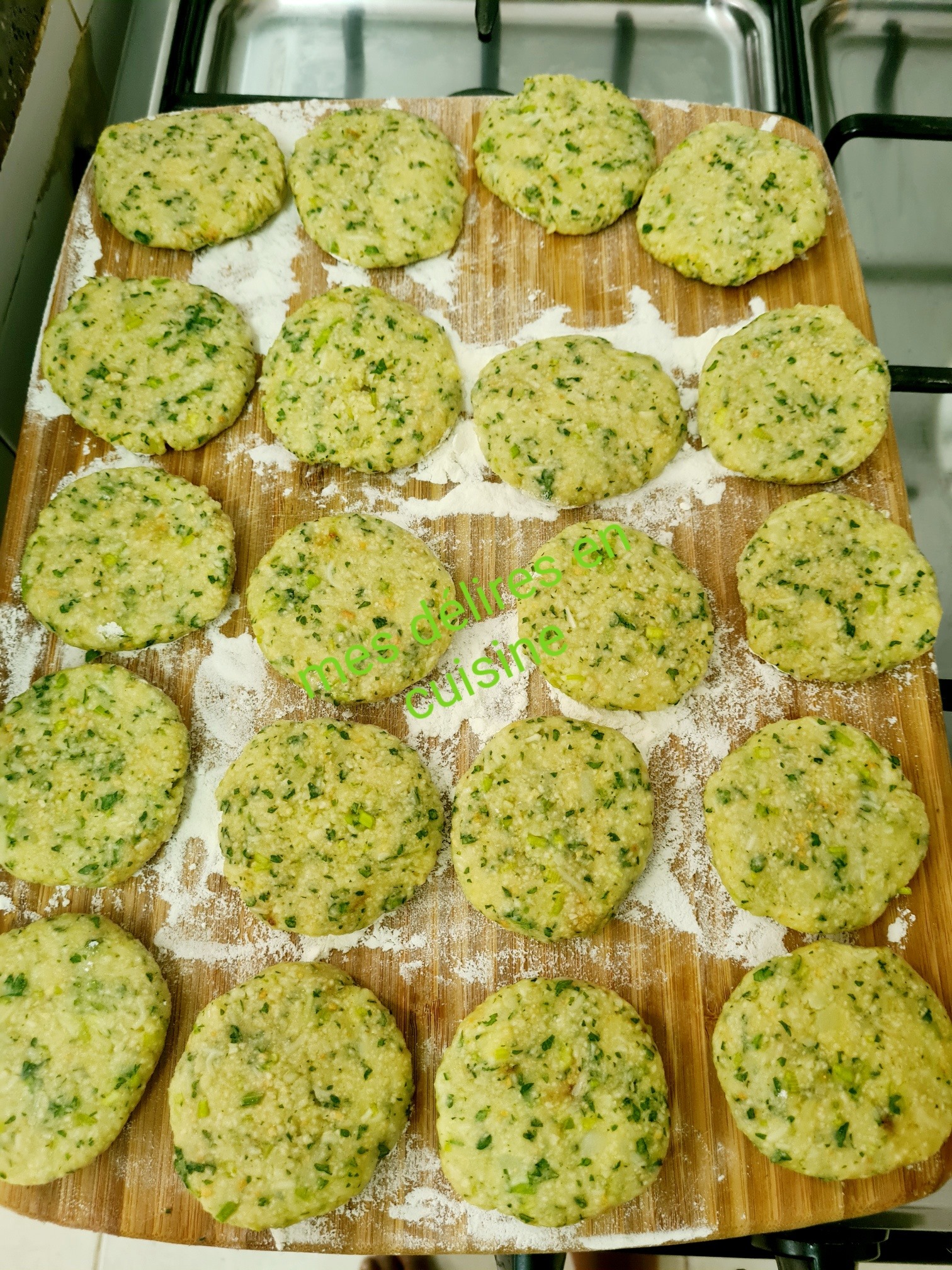 Écraser les pommes de terre cuites .Ajouter le fromage, la chapelure, le persil,l’ail , le poireau et les œufs.