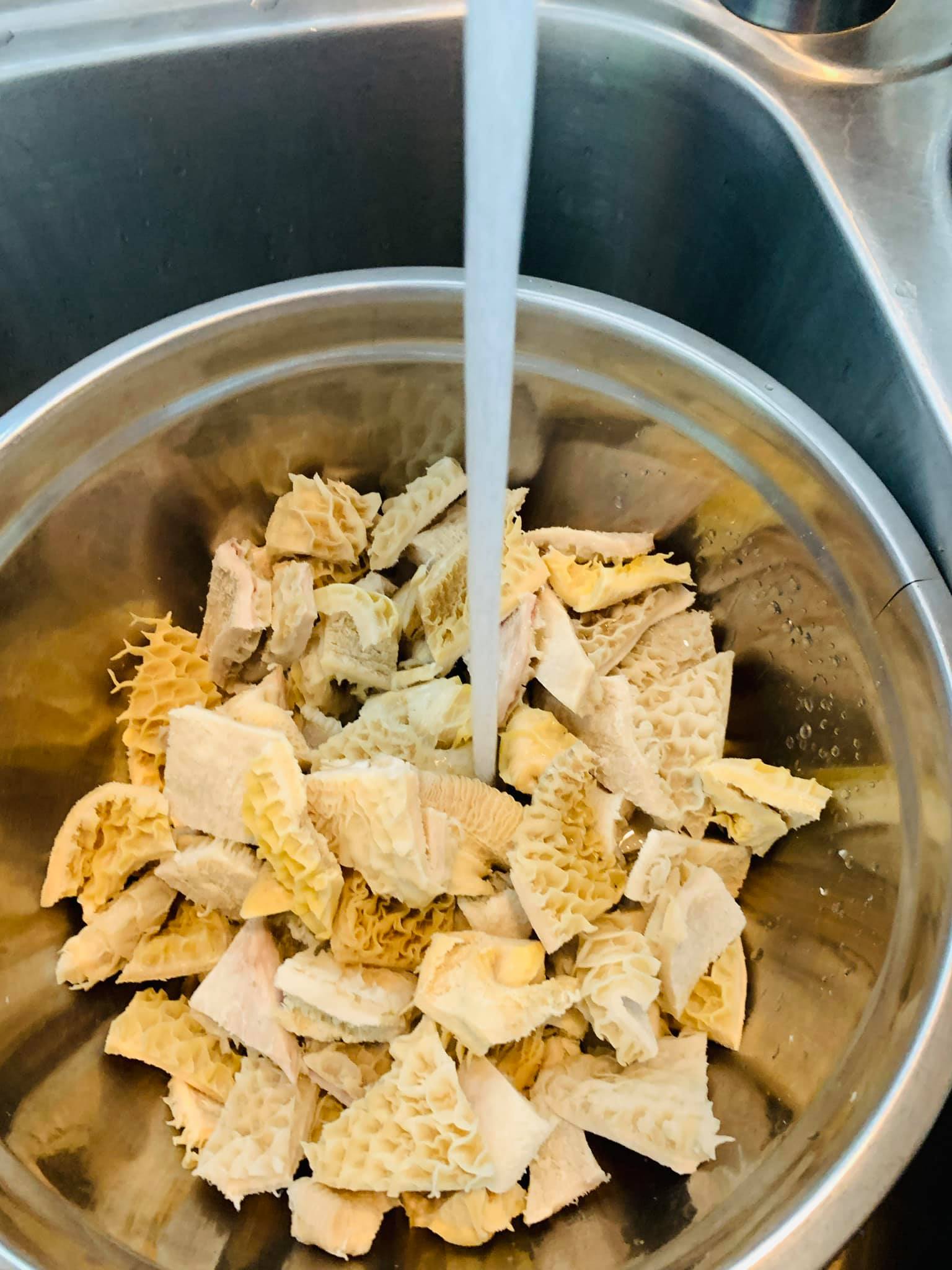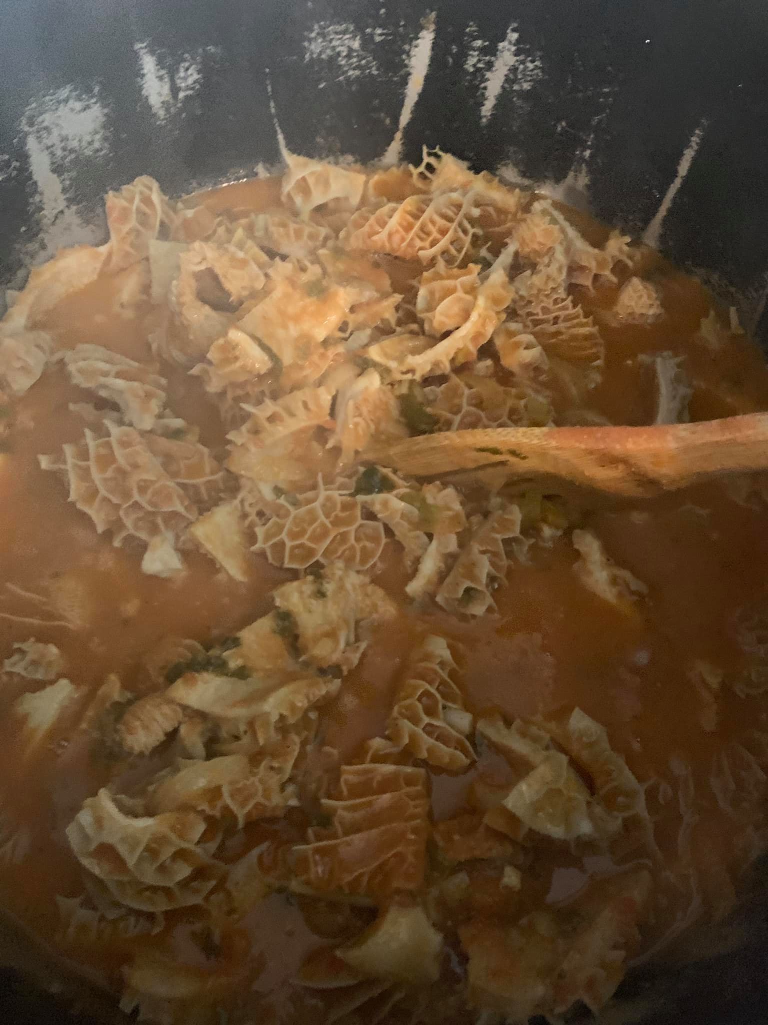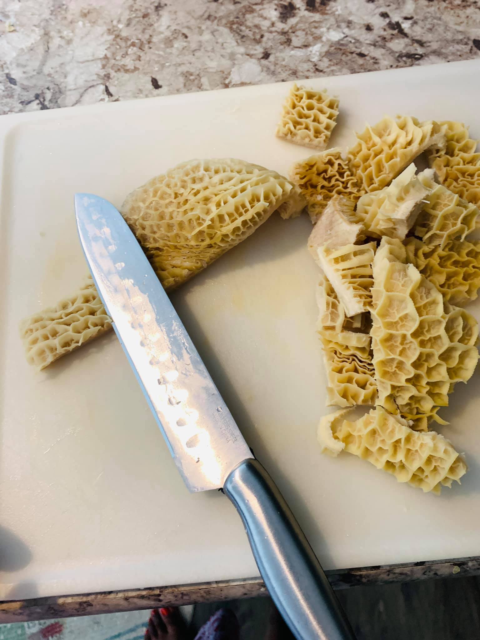 Verser la mixture dans la marmite de tripes et bien mélanger