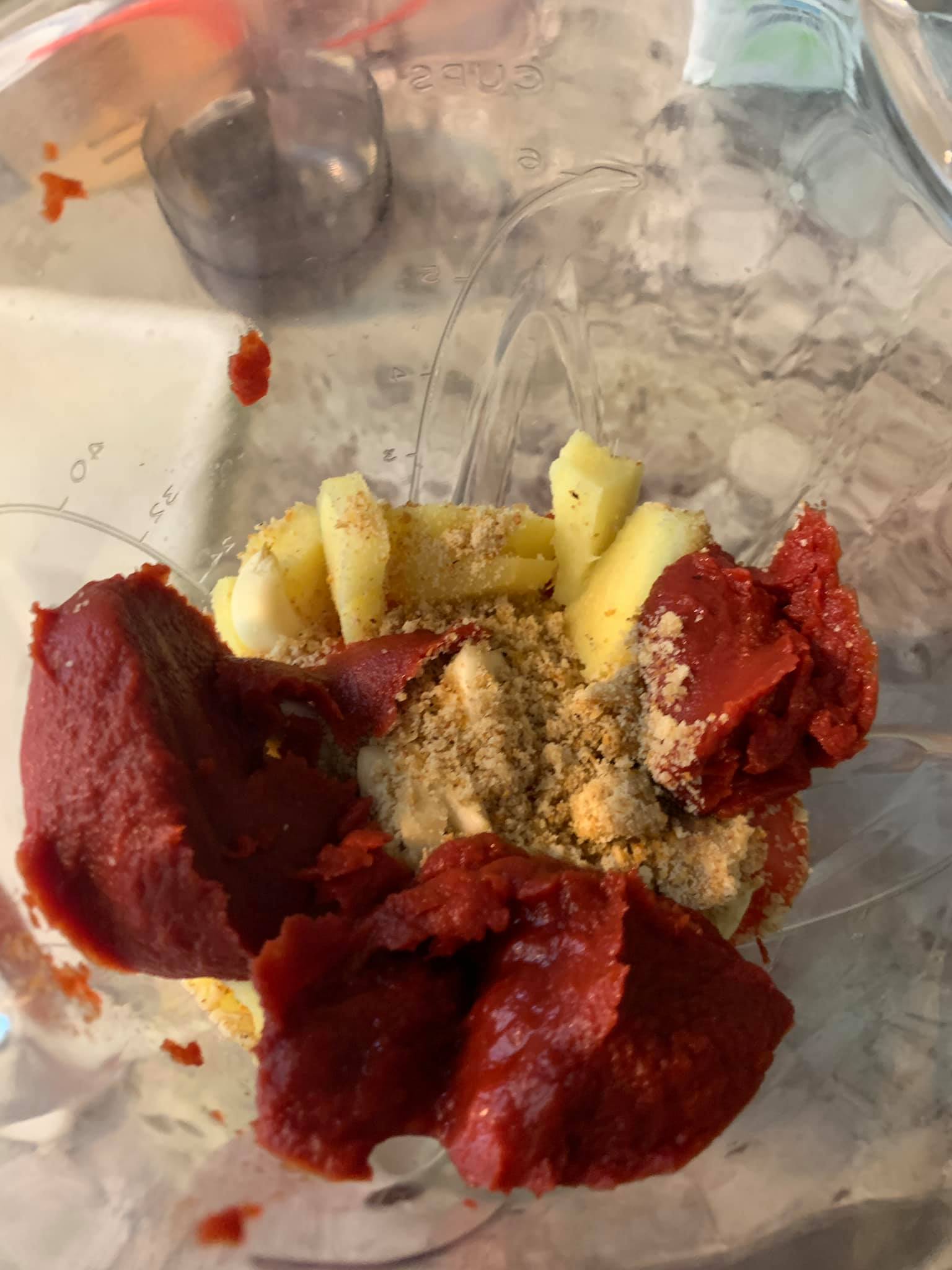 Mettre la tomate , ail , gingembre, pépé, rondelles, ndjansang dans le mixeur et mixer le tout
