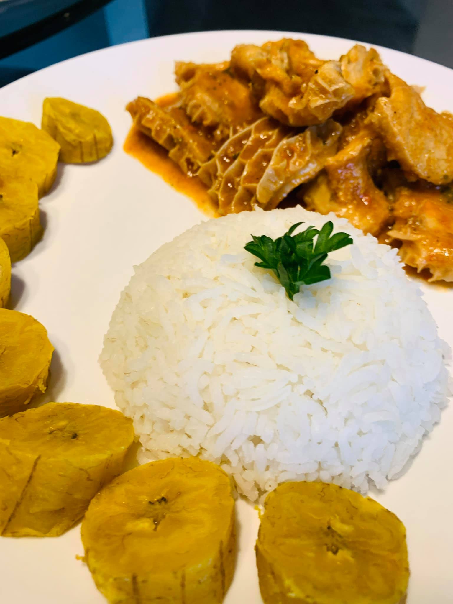 A accompagner avec du riz, plantain , pain , bâton de manioc ou manioc simple , igname …