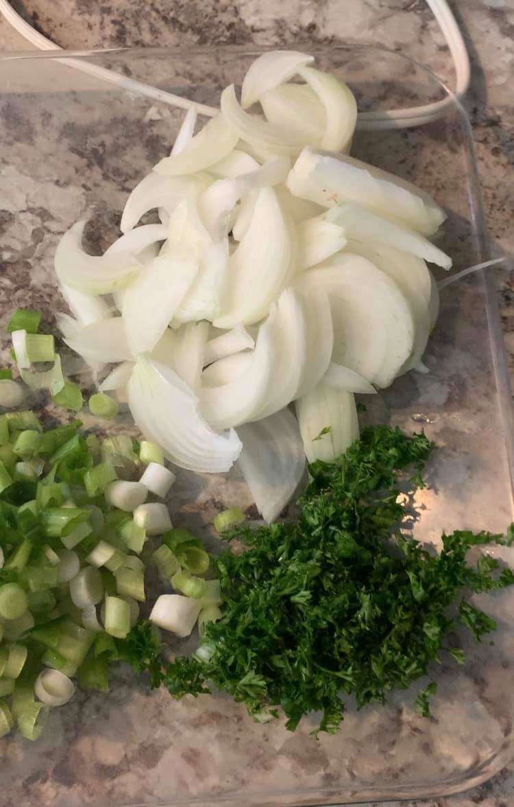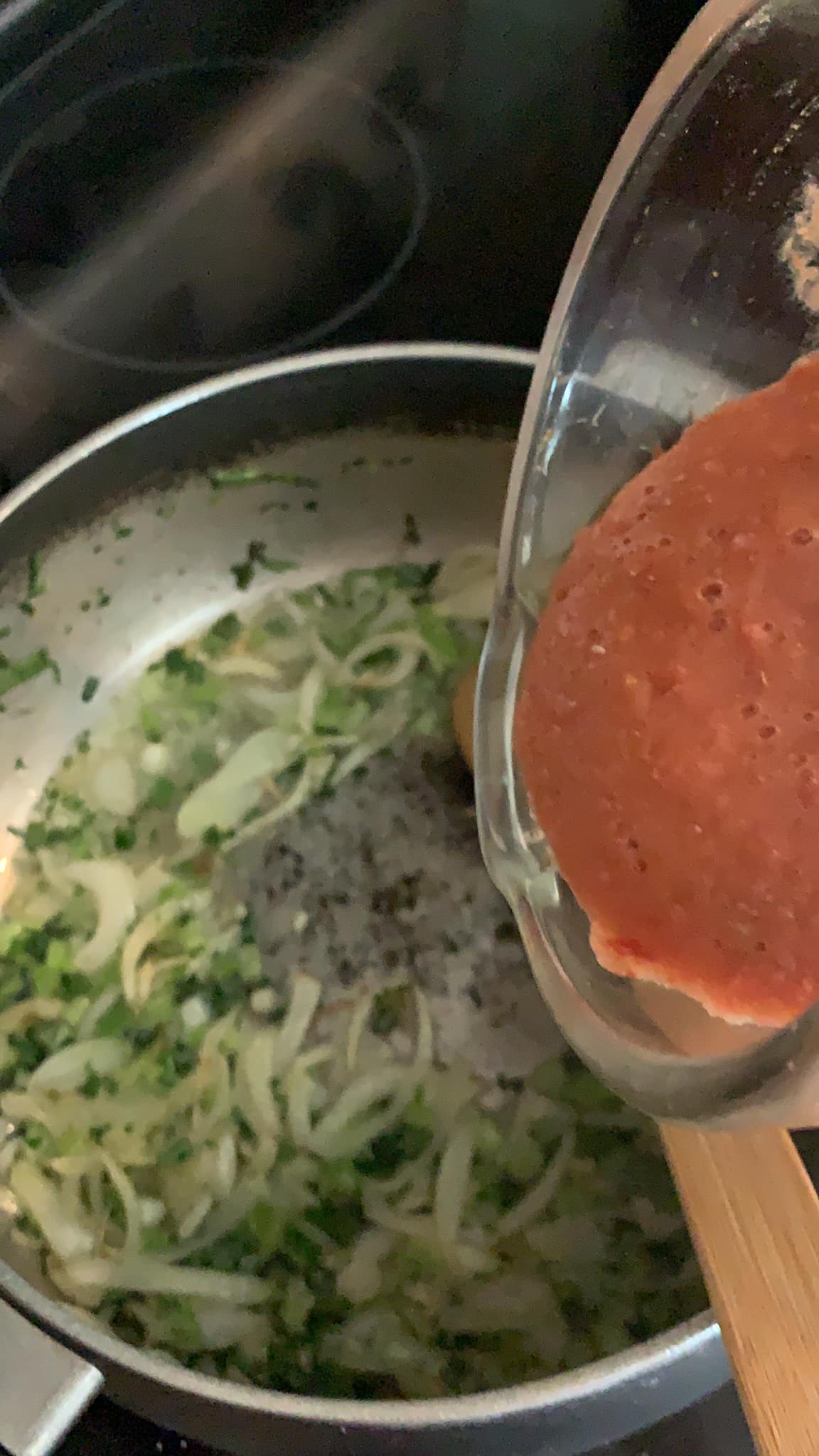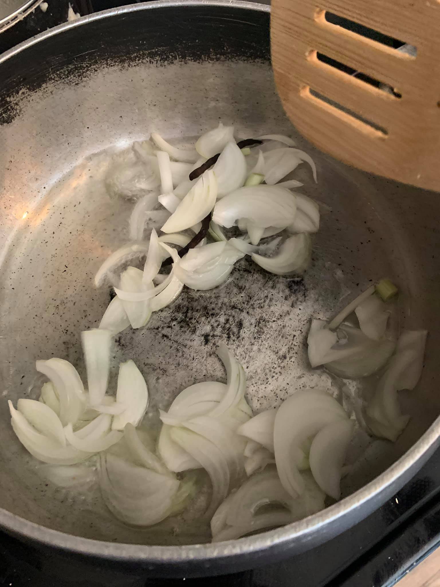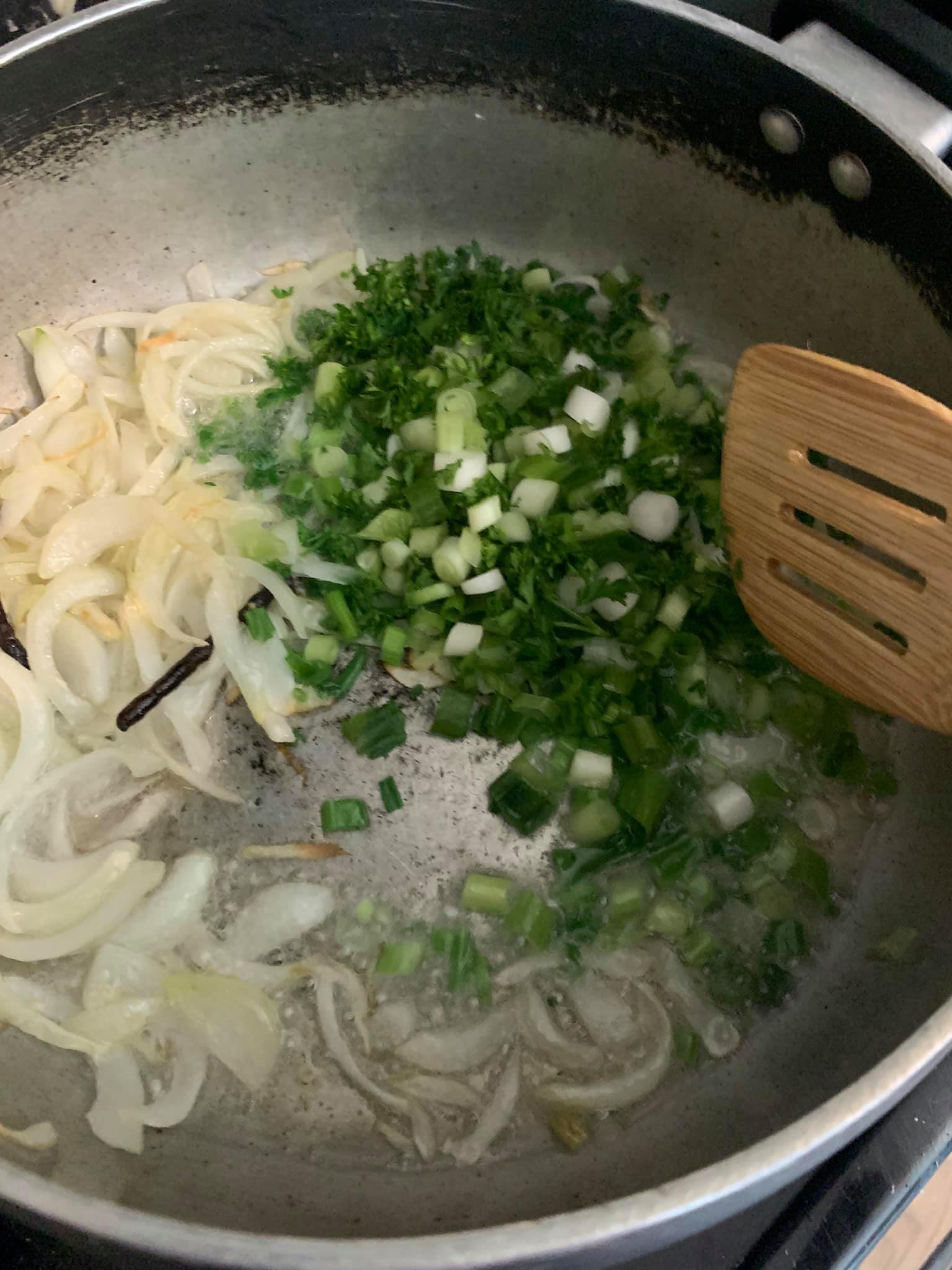 Faire revenir les oignons dans de l’huile et y rajouter les oignons verts