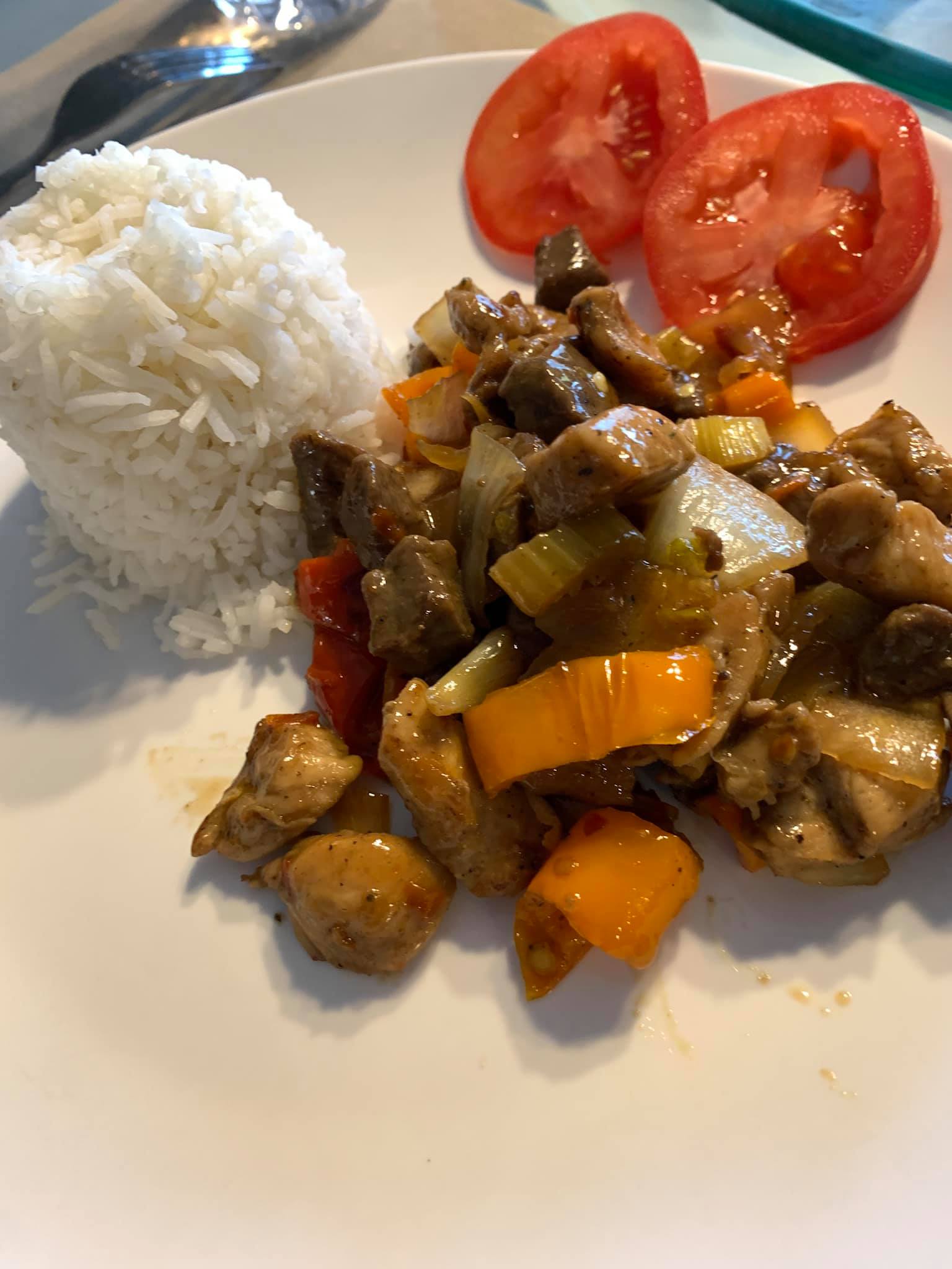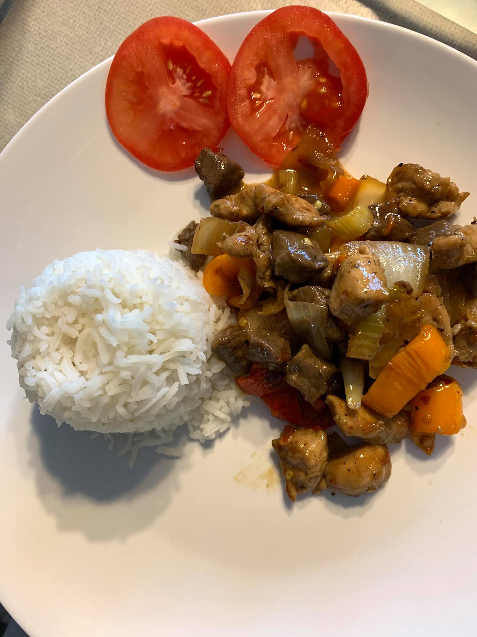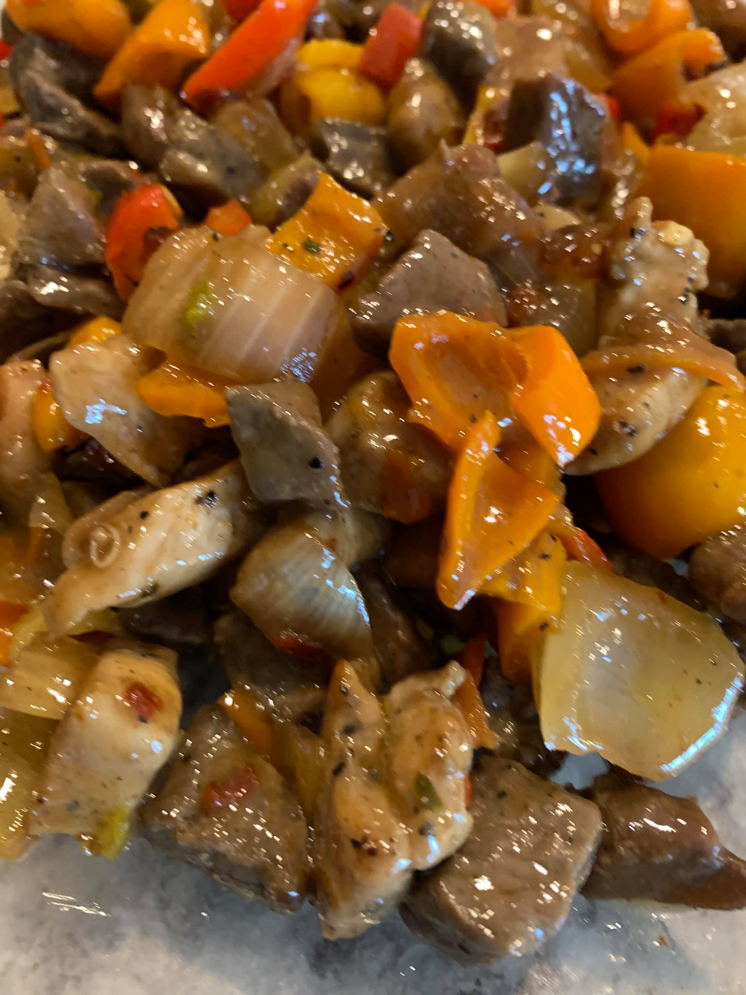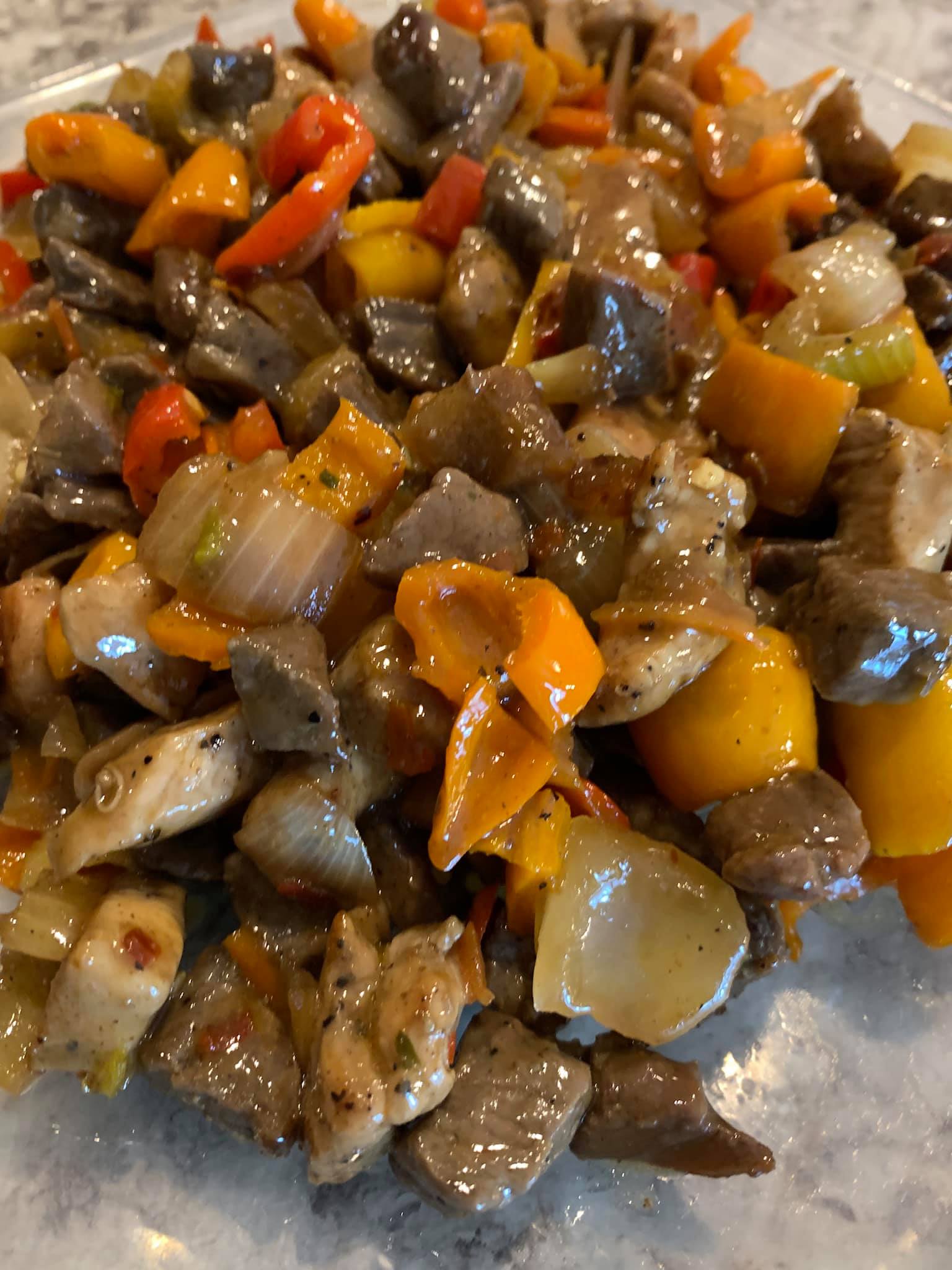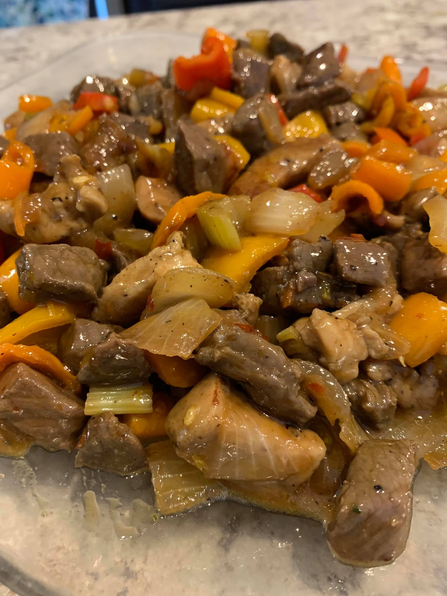 Du filet de bœuf et la poitrine de poulet sautées aux poivrons doux avec un peps de sauce orange | Cuisine de Chez Nous