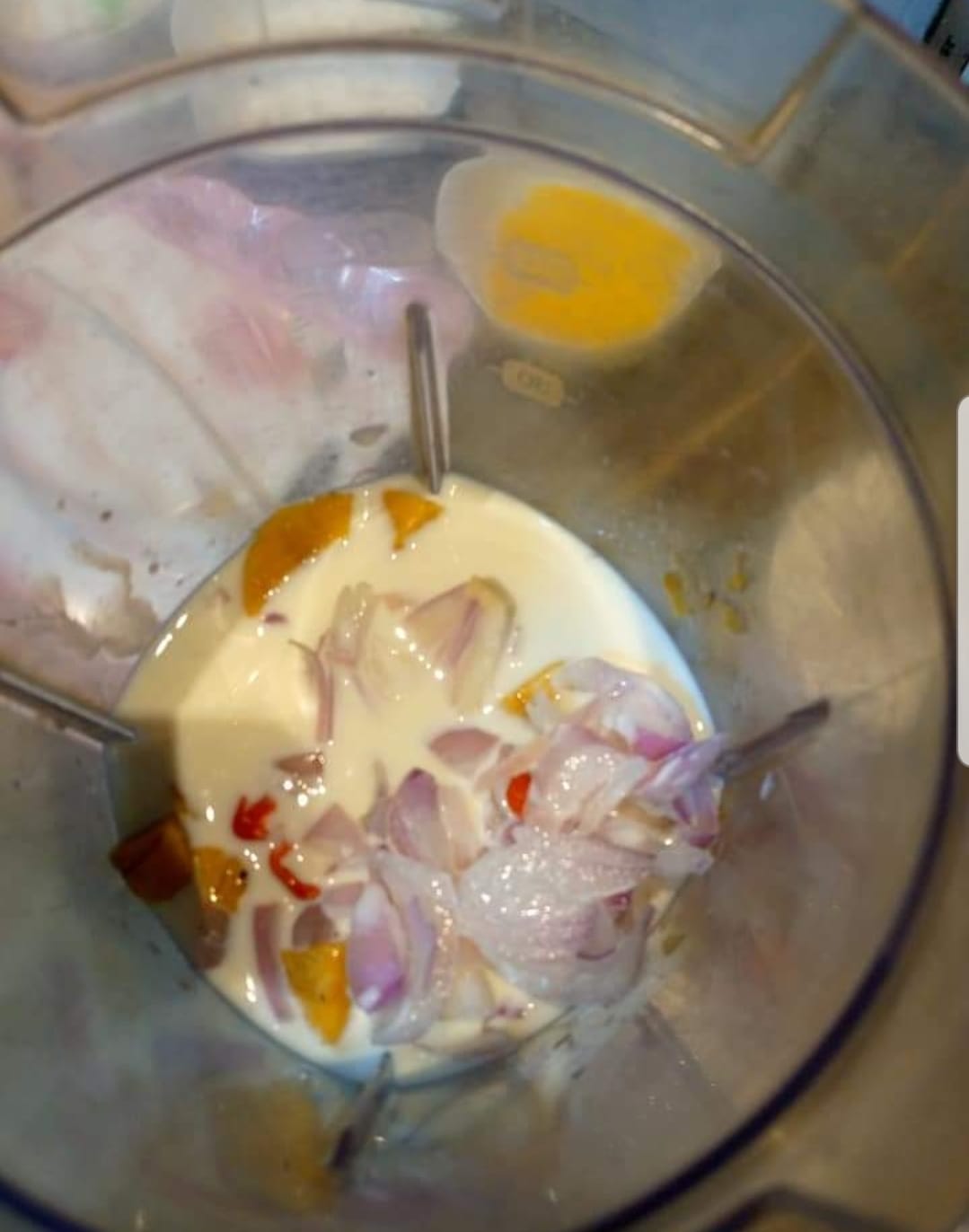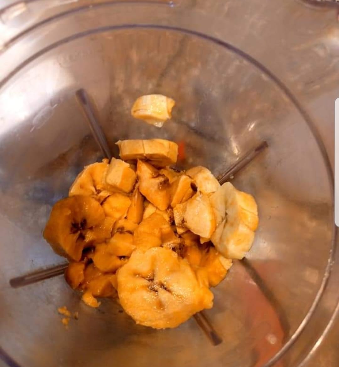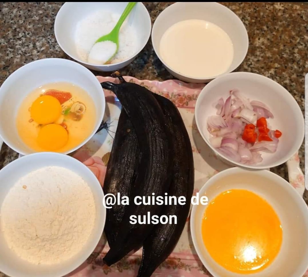 Ajouter oignon et piment (si vous comptez faire des crêpes salées sinon vous pouvez faire des crêpes au plantain sucre sans ceci)