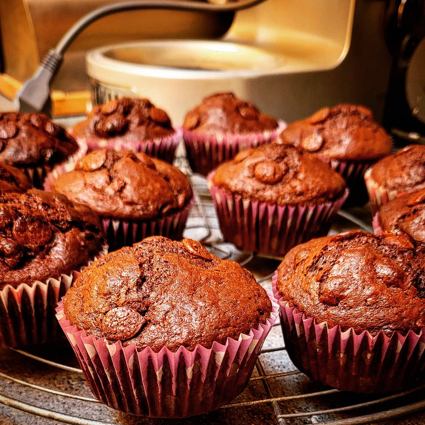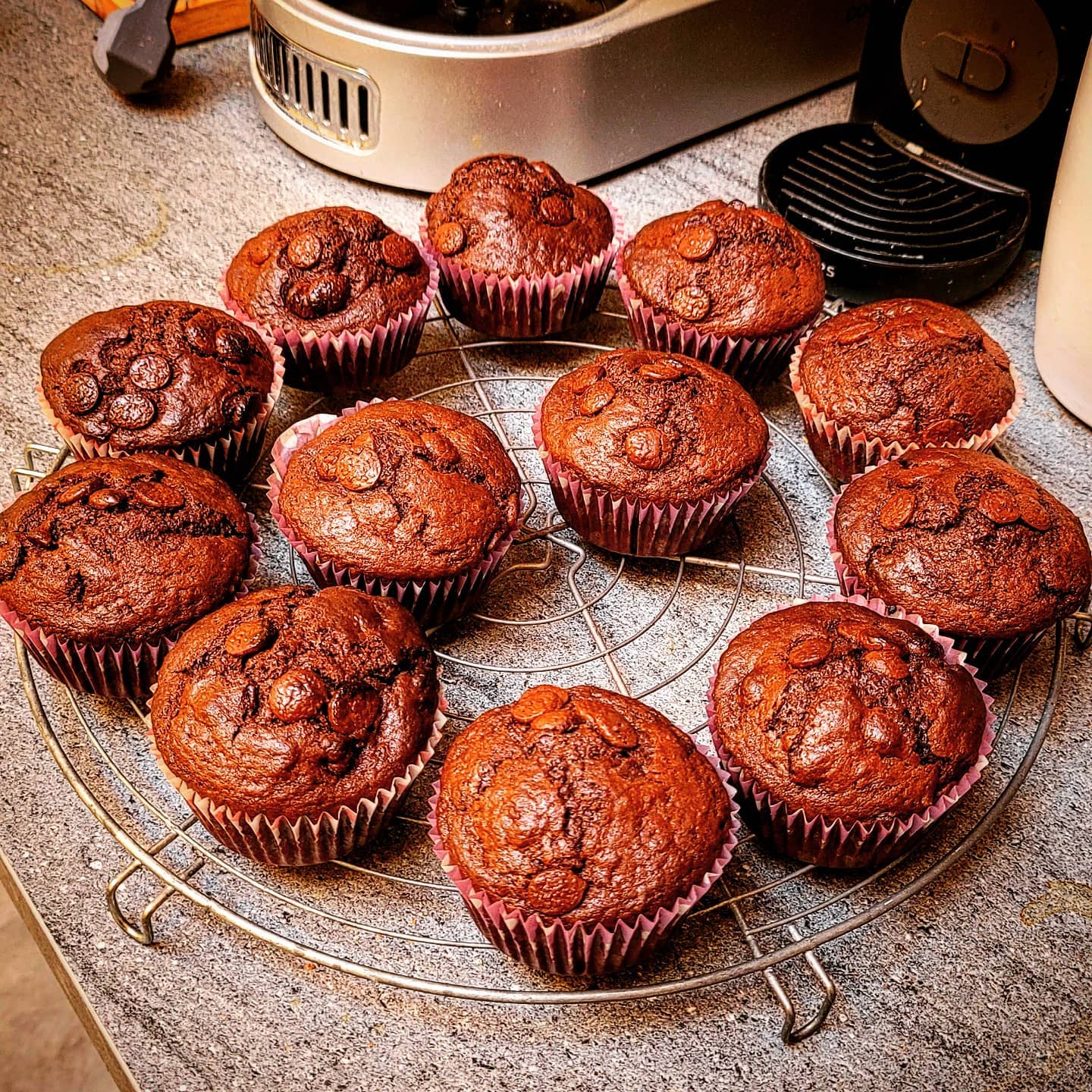 - Enfourner pour 15 à 20 min selon la grandeur des muffins et le four . Une brochette piquée au cœur doit ressortir sèche. Attention ne les cuisez pas plus qu’il ne faut sinon ils vont s’assécher.