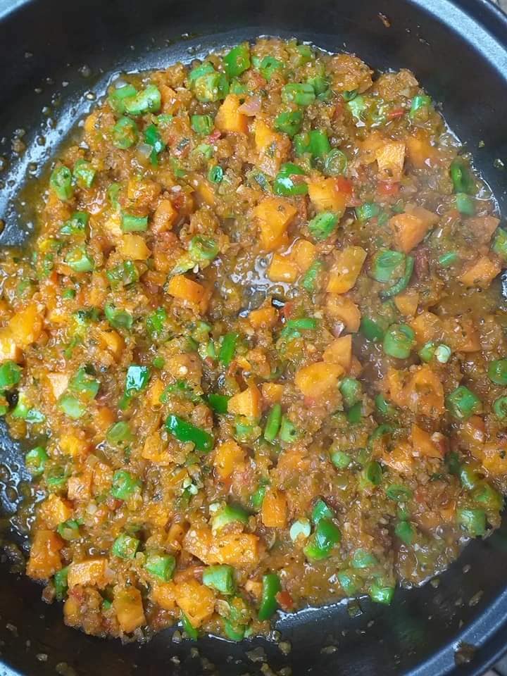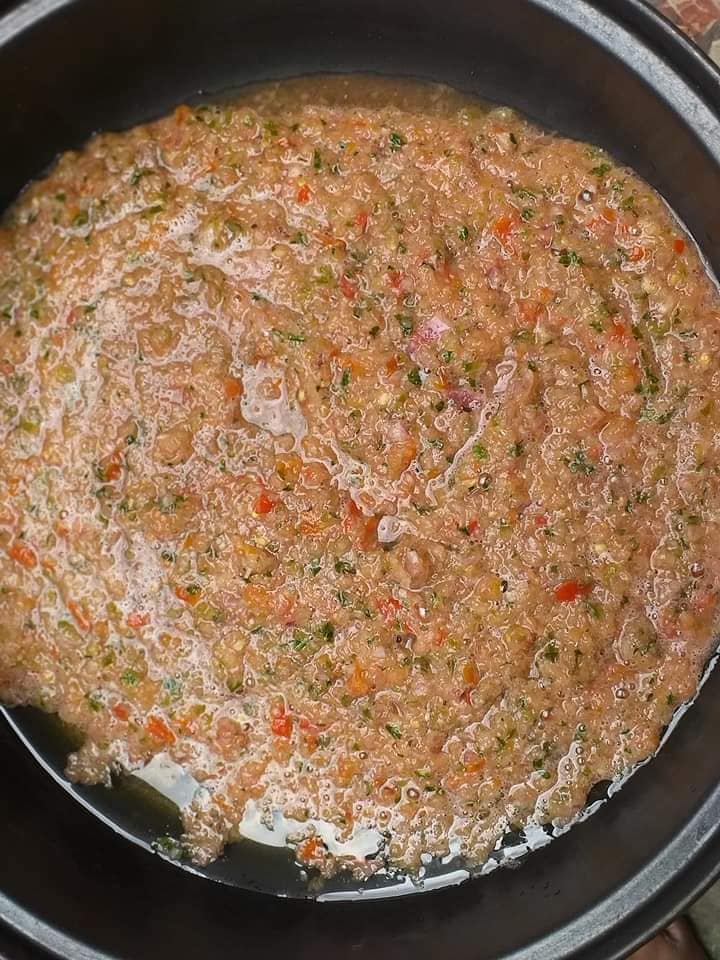 Mixez (poivron, oignon, tomates, persil, et piment )