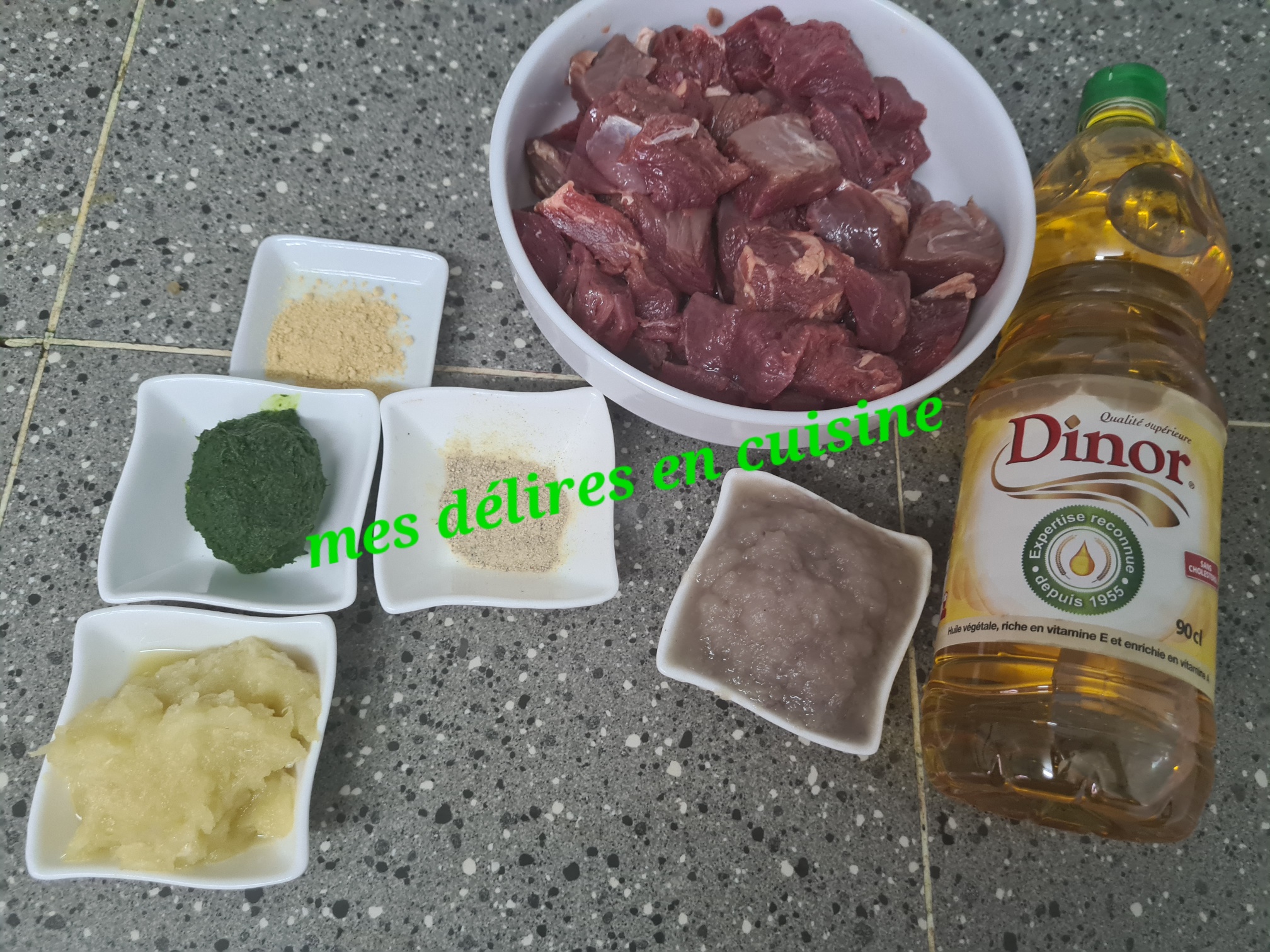 ●La sauce verte c’est la marinade de la viande cuite