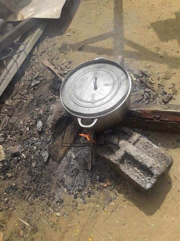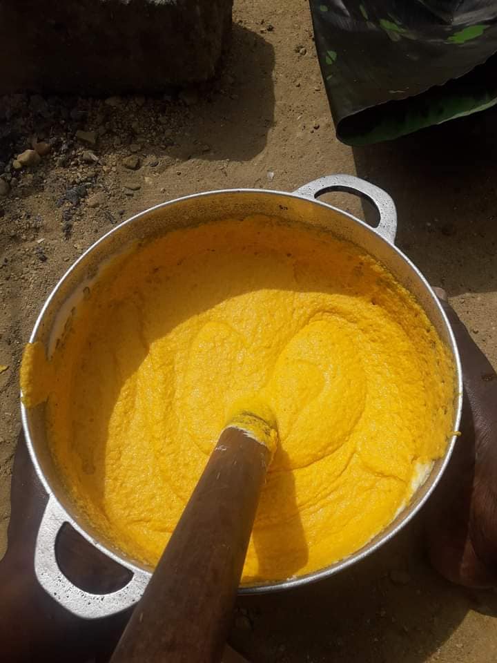- Mettre une petite marmite pour réchauffer l’eau qui servira à mélanger la patte de koki.